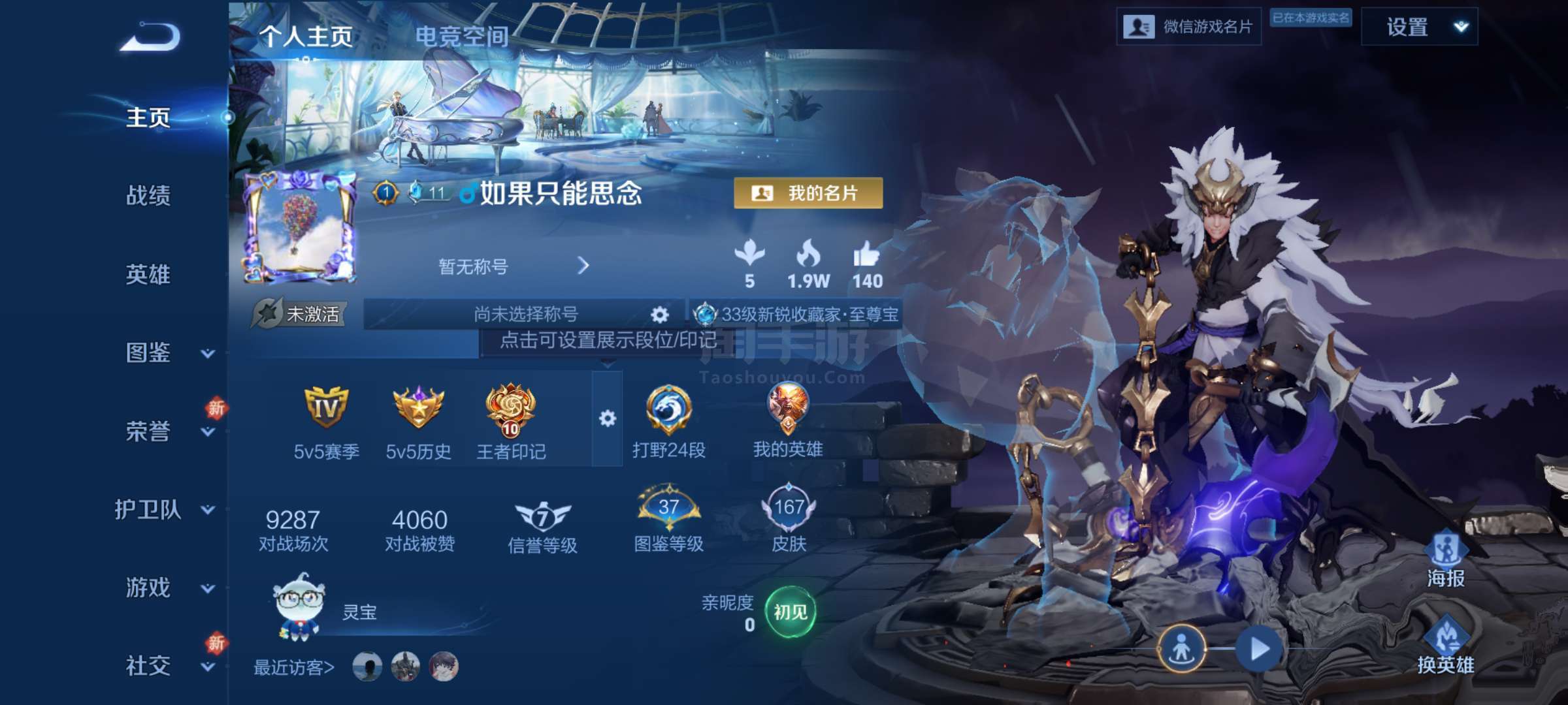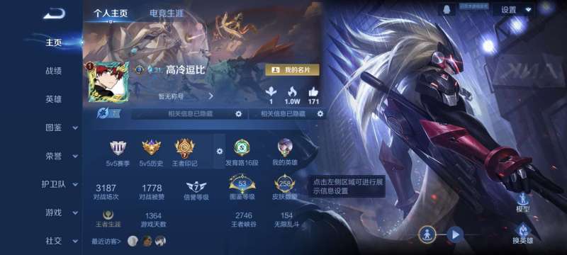 实名: 可修改 贵族等级: V7 英雄数: 128 皮肤数: 235 星传说:
