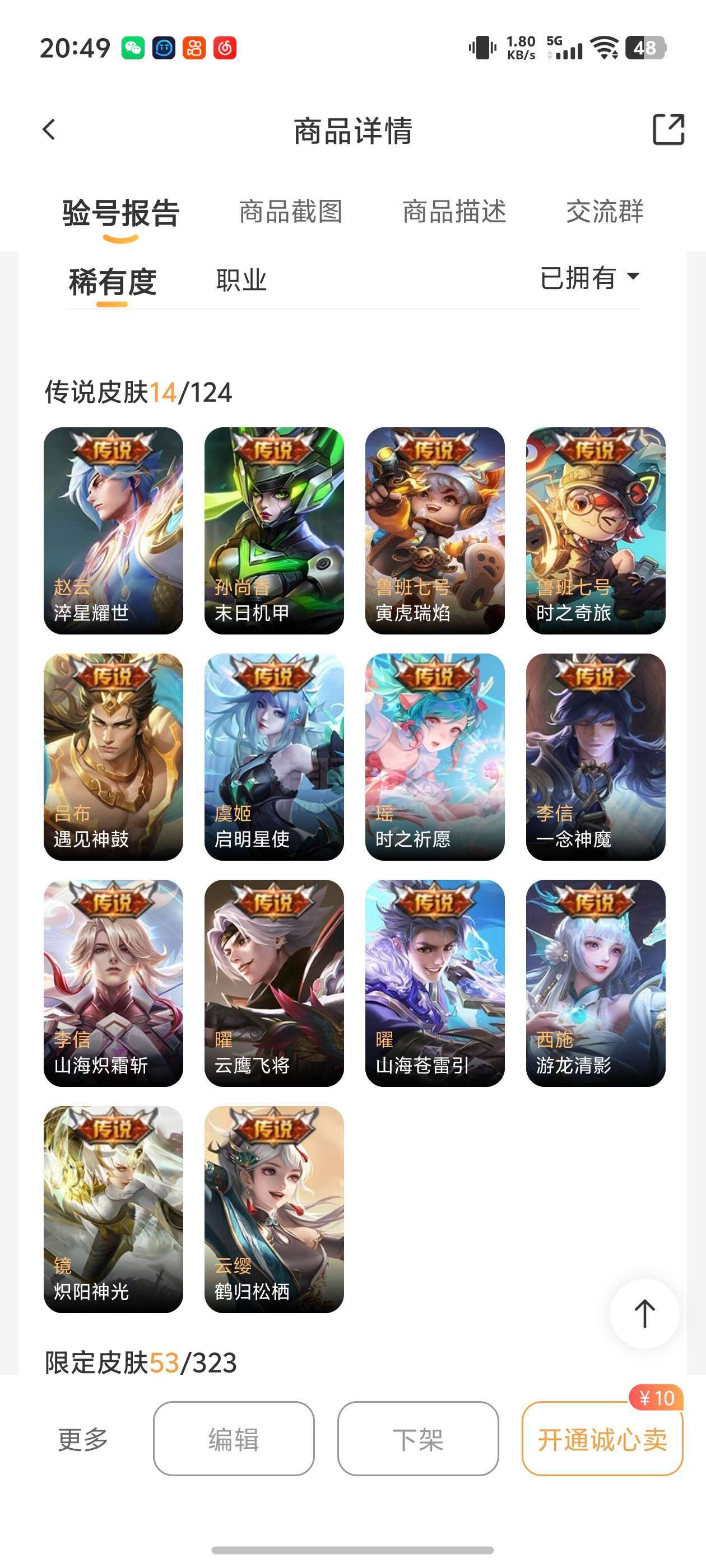 皮肤120 英雄126 荣耀王者 珍品传说2 传说10 其他皮肤46-2珍品,10传说,便宜卖