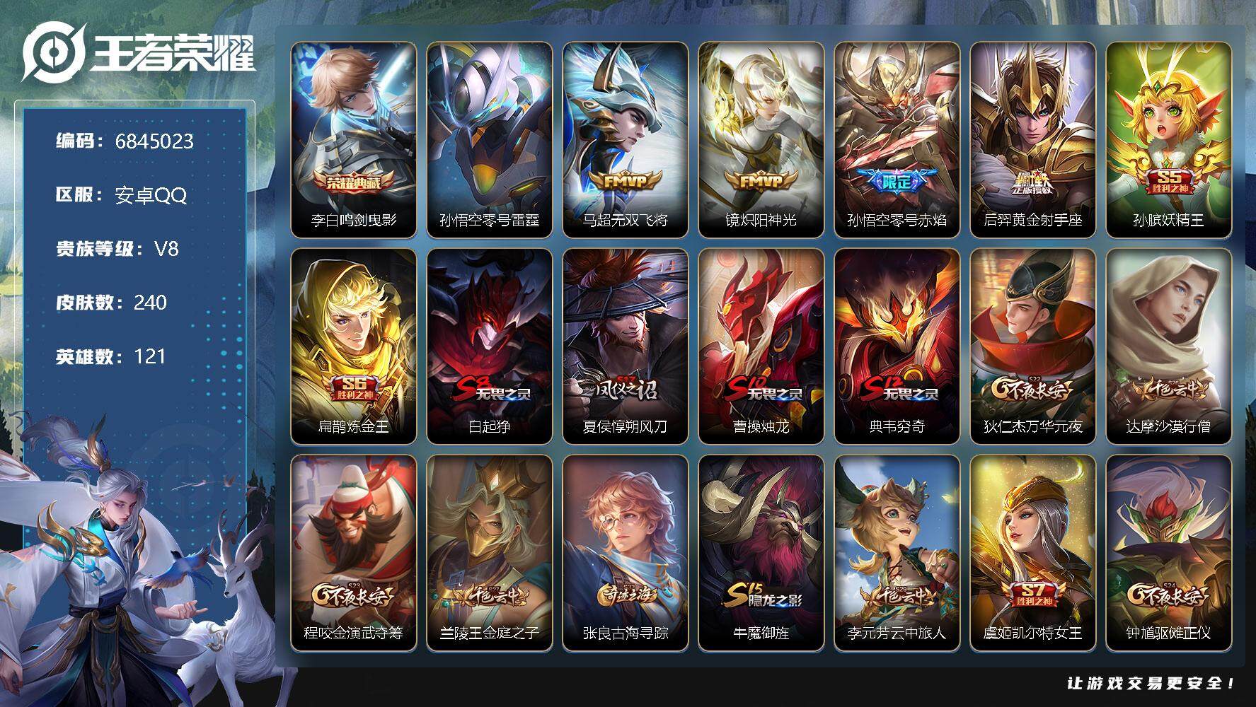 【鼠年限定全套】实名: 可修改 贵族等级: V7 英雄数: 126 皮肤数: