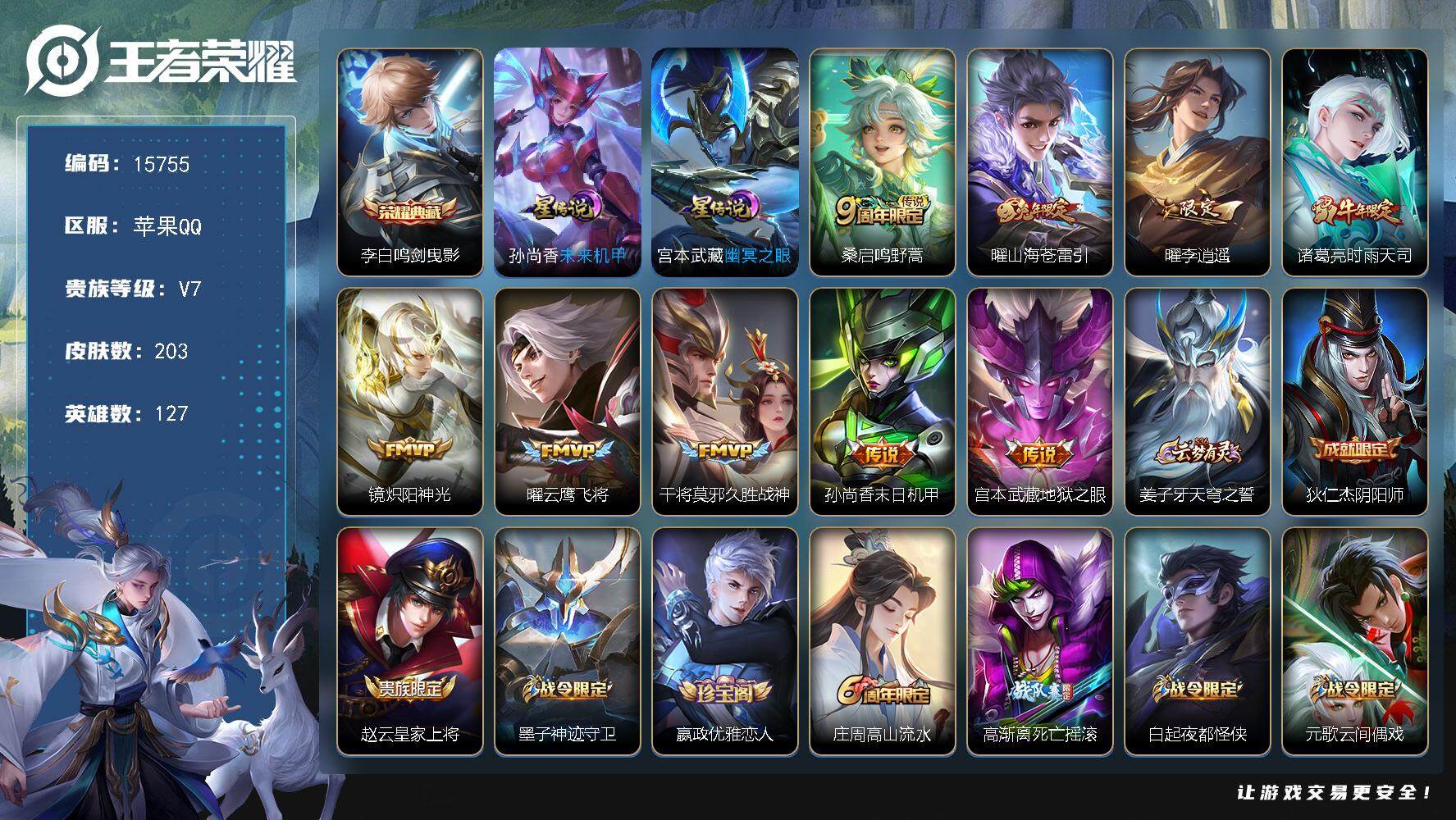 V7 1典藏 7传说 127英雄 203皮肤 可修改实名