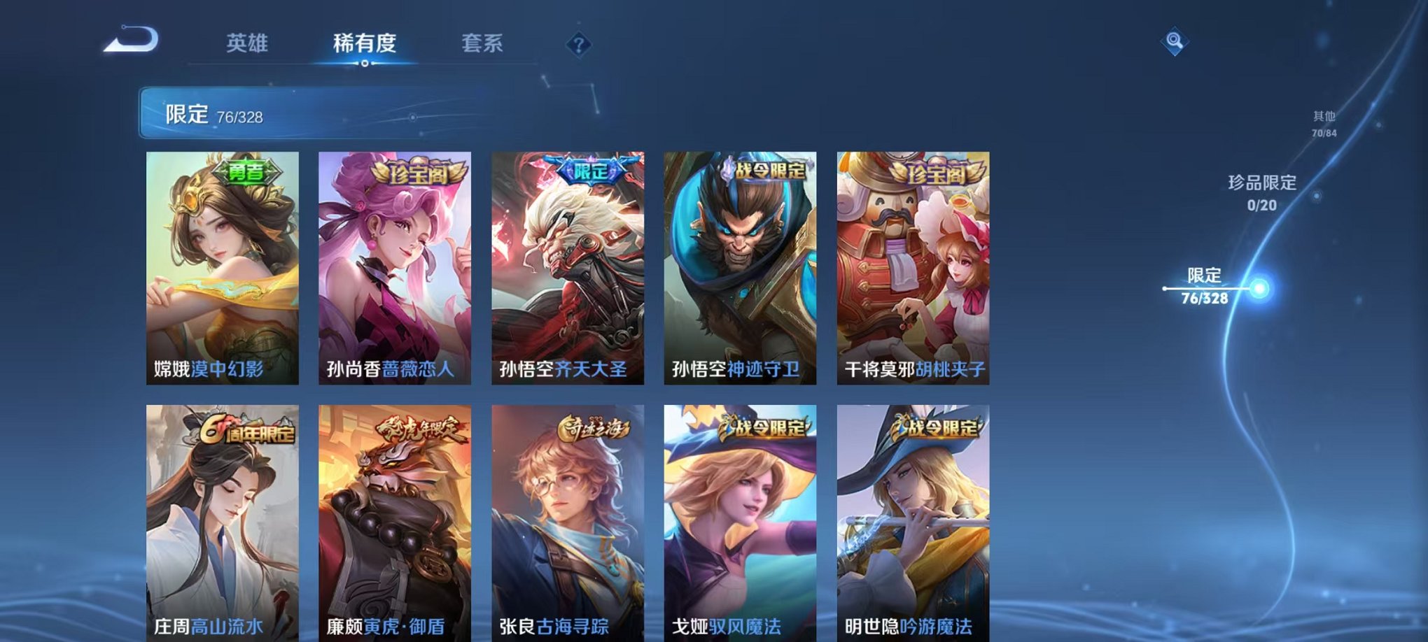 安卓QQ 皮肤256 英雄126 典藏1 传说5 其他皮肤83 永恒钻石-