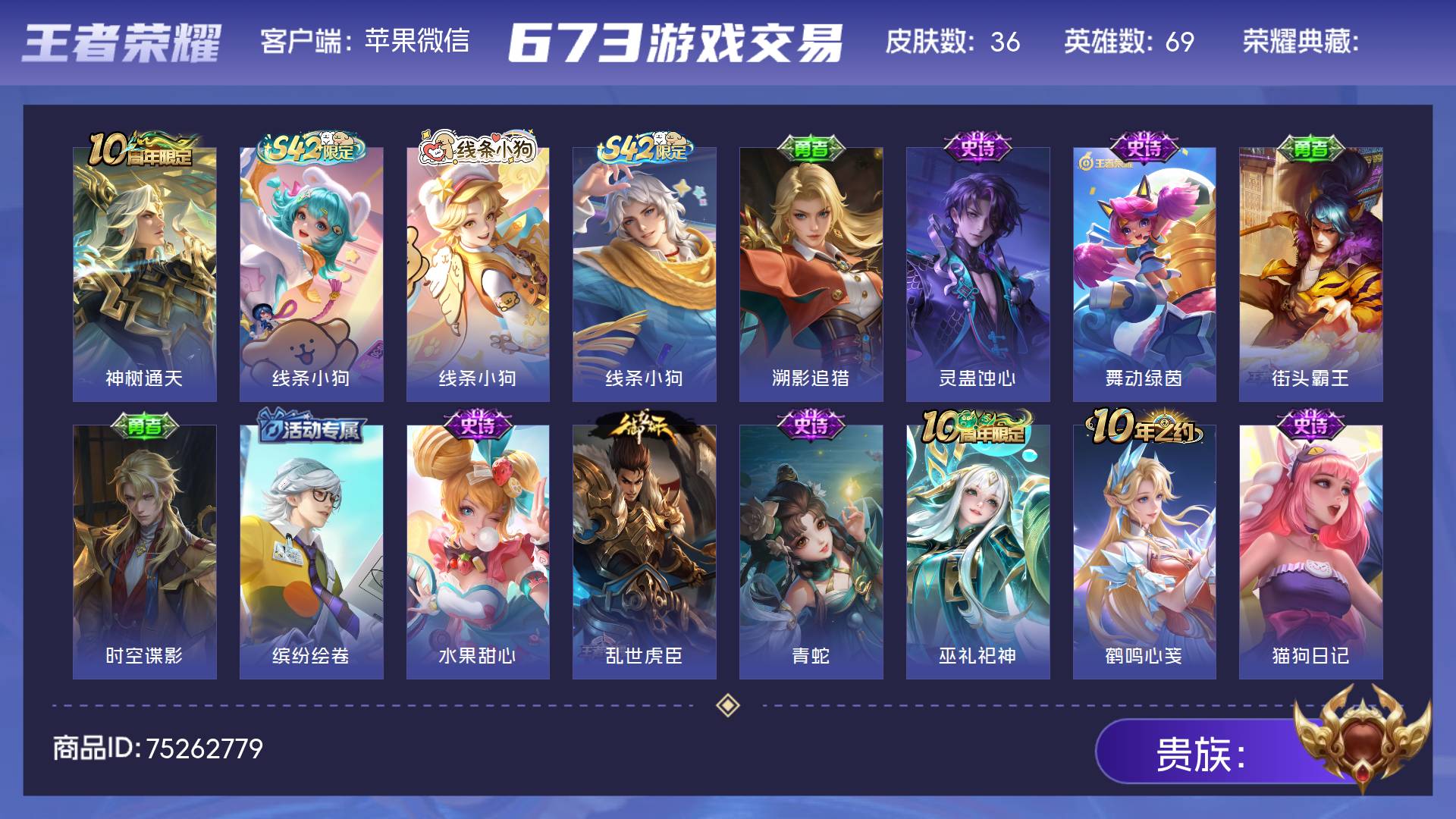 皮肤36 英雄69 最强王者 传说1 其他皮肤38