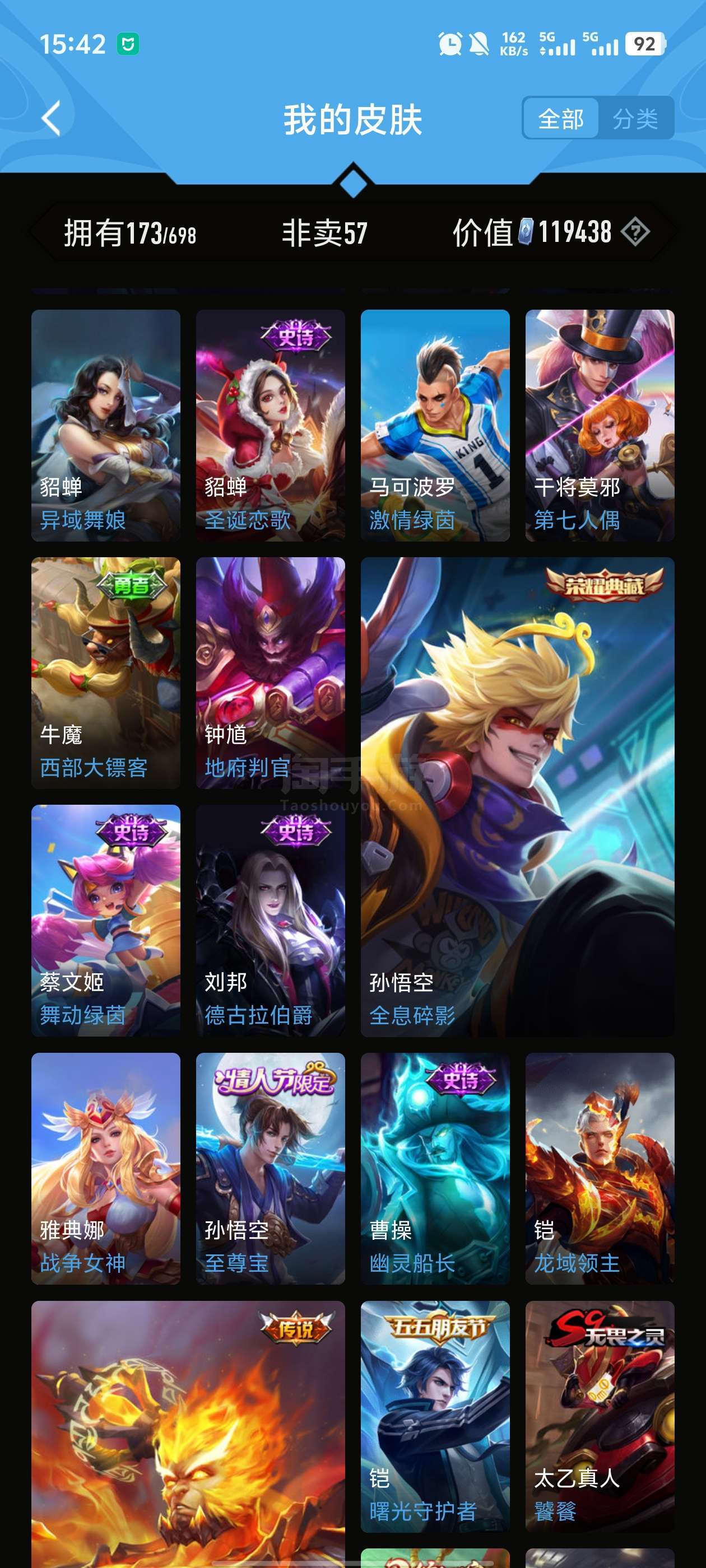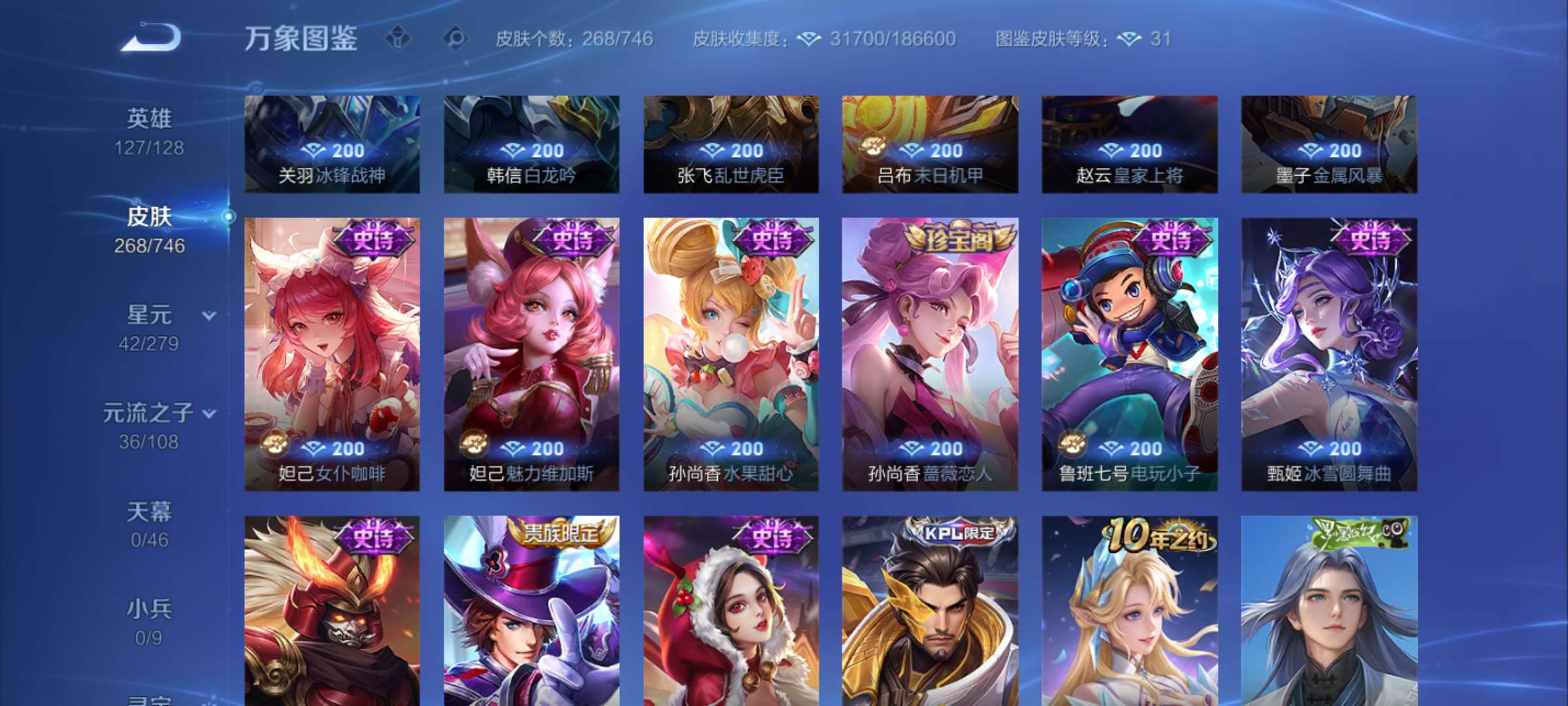 [王者荣耀]V71典藏8传说64史诗206皮肤无双王者