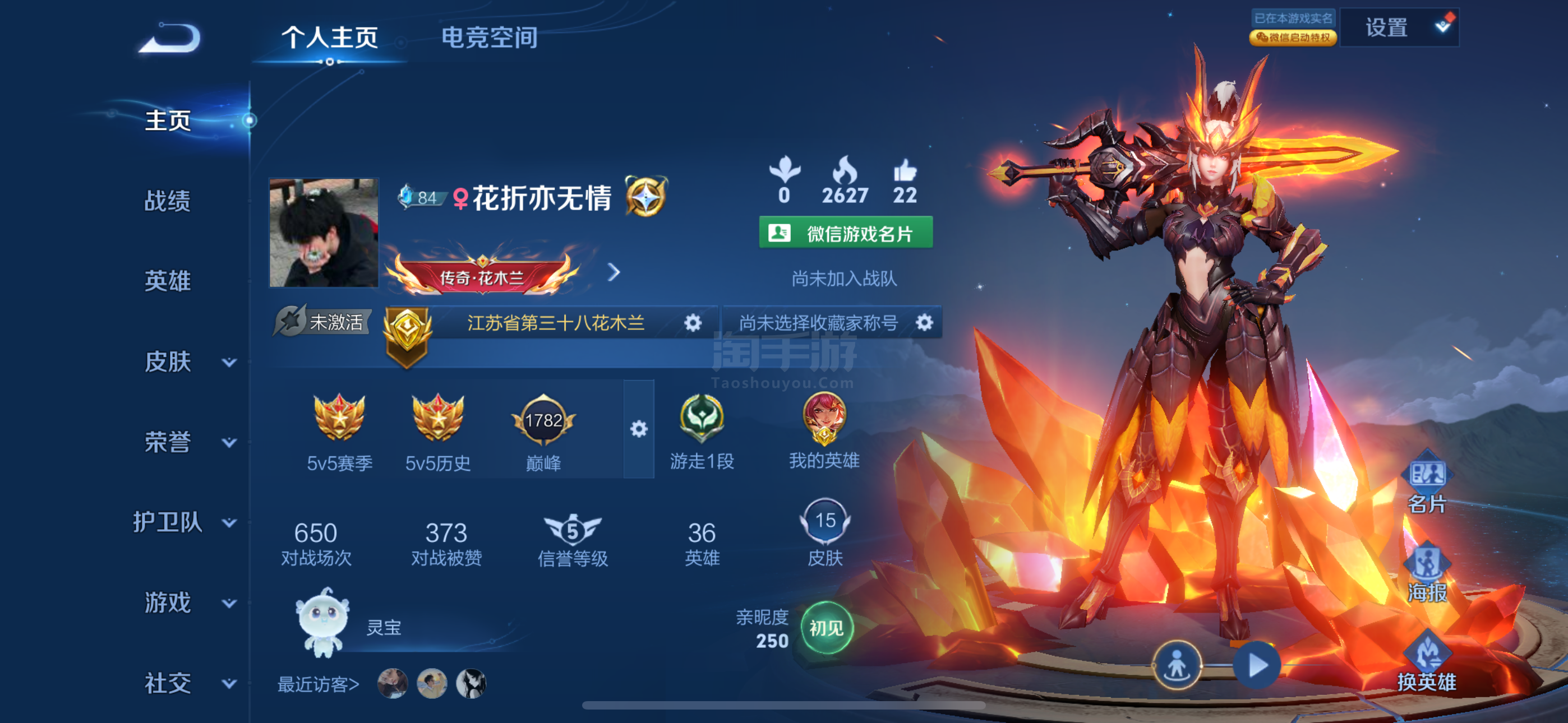 万战金标在榜花木兰 皮肤不多 百星段位