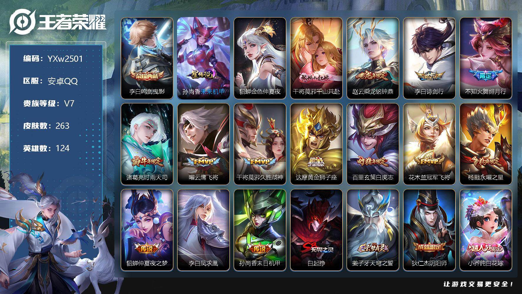 皮肤103 英雄129 永恒钻石 传说6 其他皮肤103-安卓QQ-出售王者V7账号有喜欢的可以联系