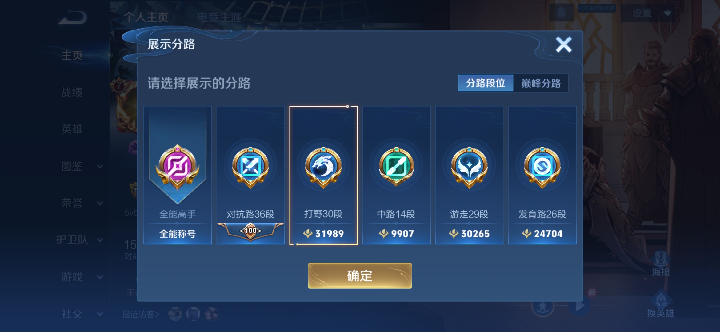 有三个试标历史传奇,目前荣耀,巅峰1500,有限定传说和年限