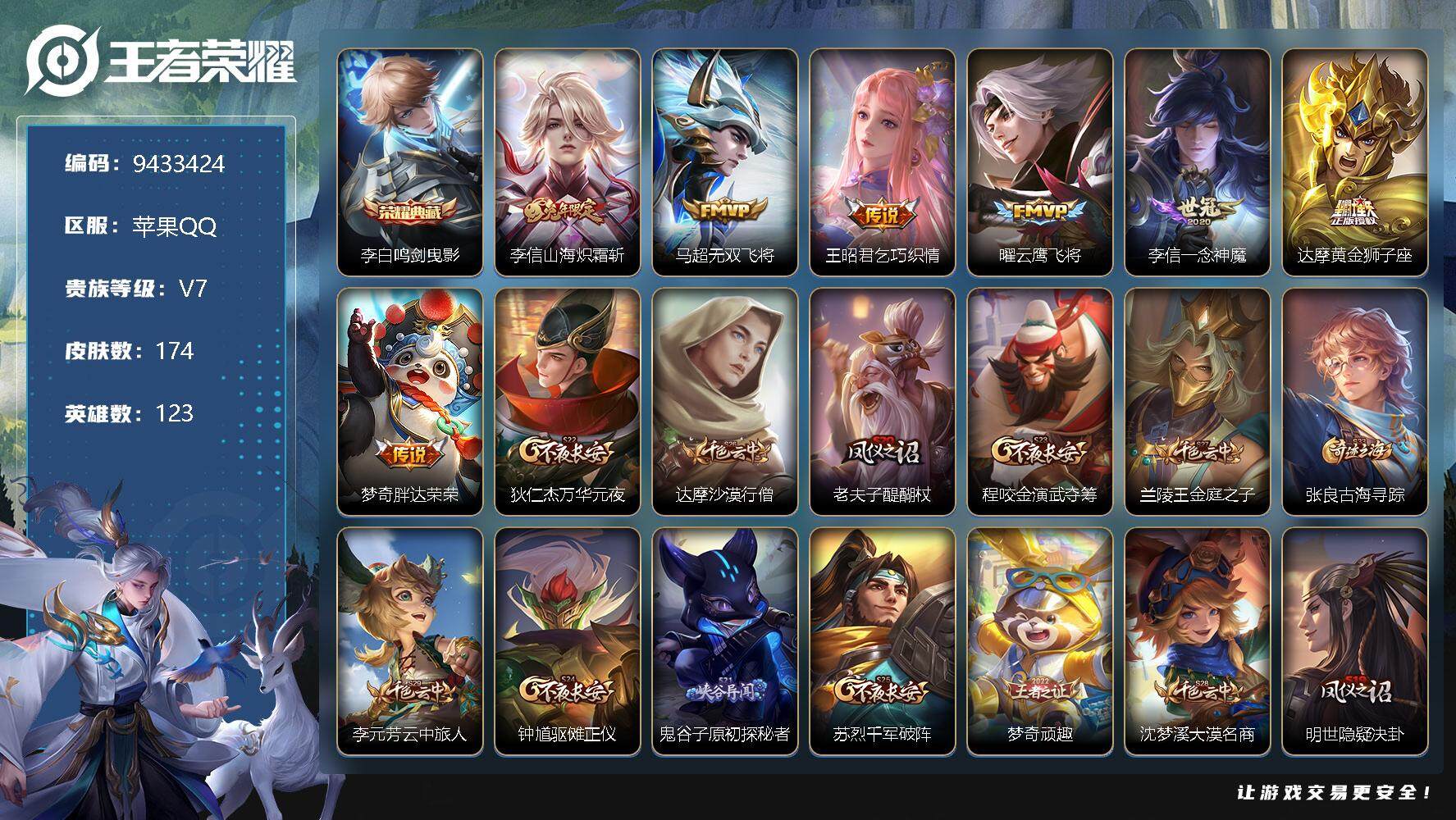 【15传说280皮肤1星元可秒换绑】苹果QQ-128英雄-