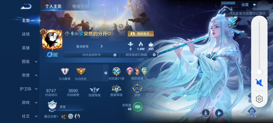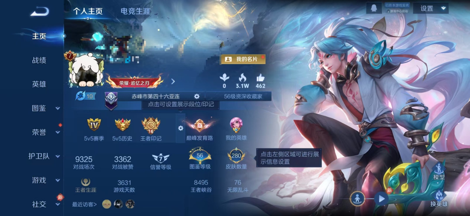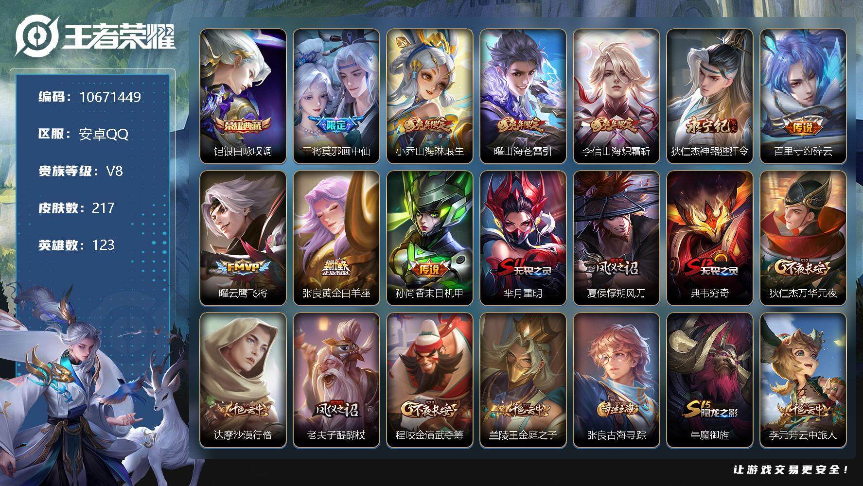 [10671449]实名: 可修改 贵族等级: V8 英雄数: 123 皮肤数