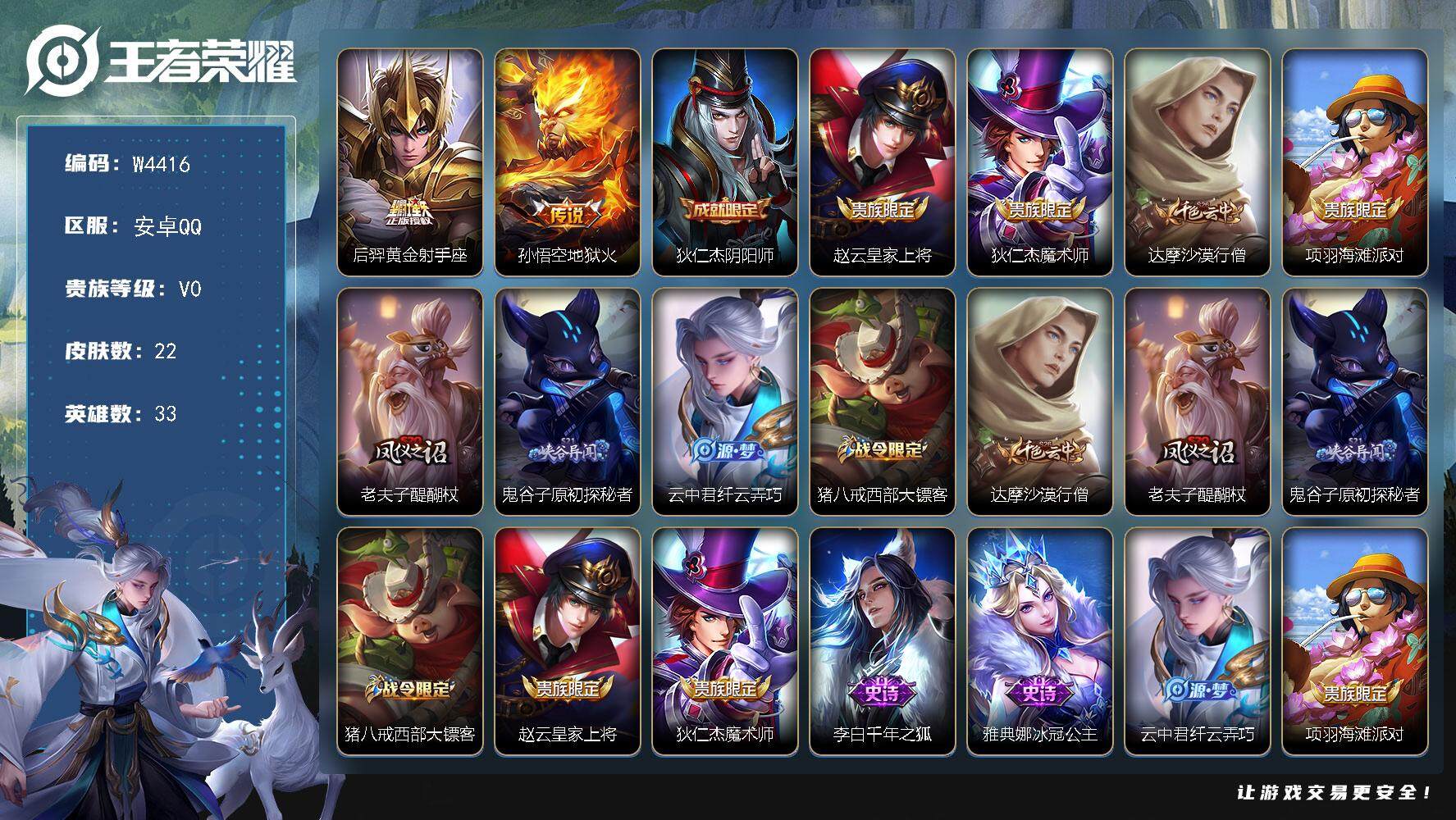 【LWZ1669】【商品标题】:安卓Q-V5-尊贵铂金II段位-122英雄-1