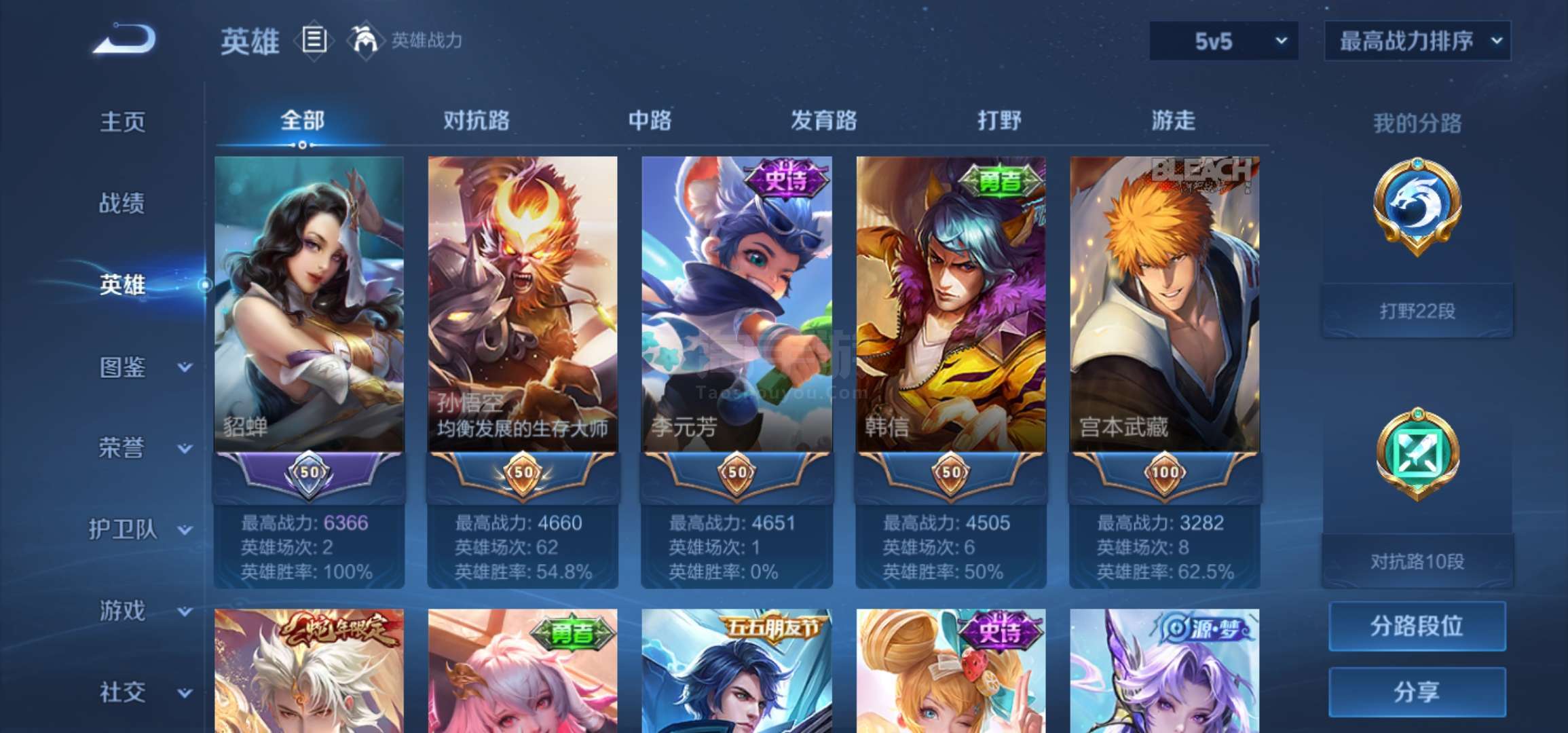 [王者荣耀]V715传说58史诗254皮肤至尊星耀II