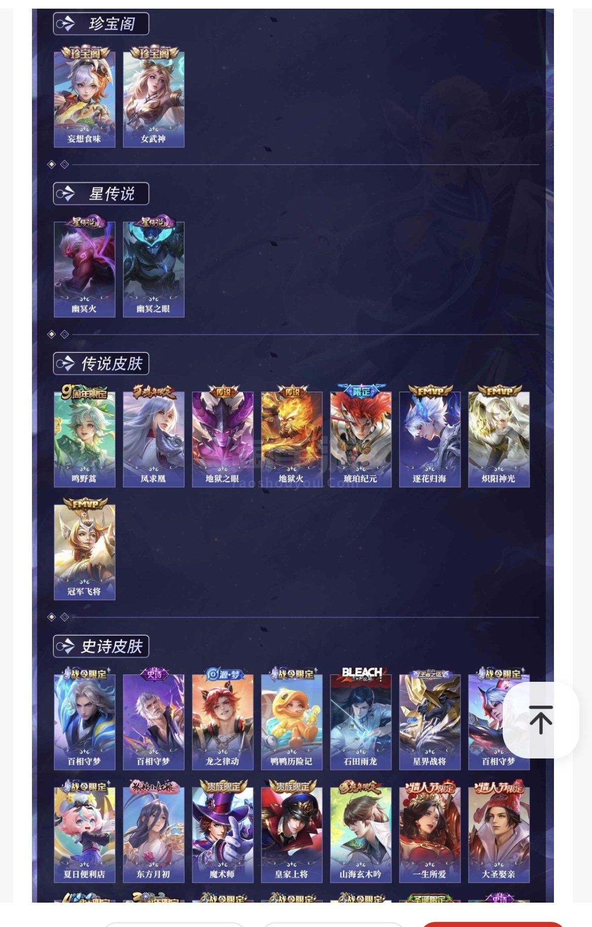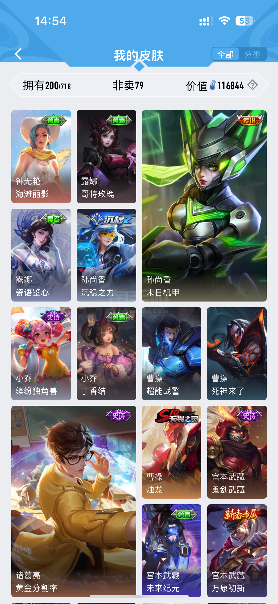 皮肤171 英雄128 至圣王者 珍品传说1 传说11 其他皮肤66-娱乐号