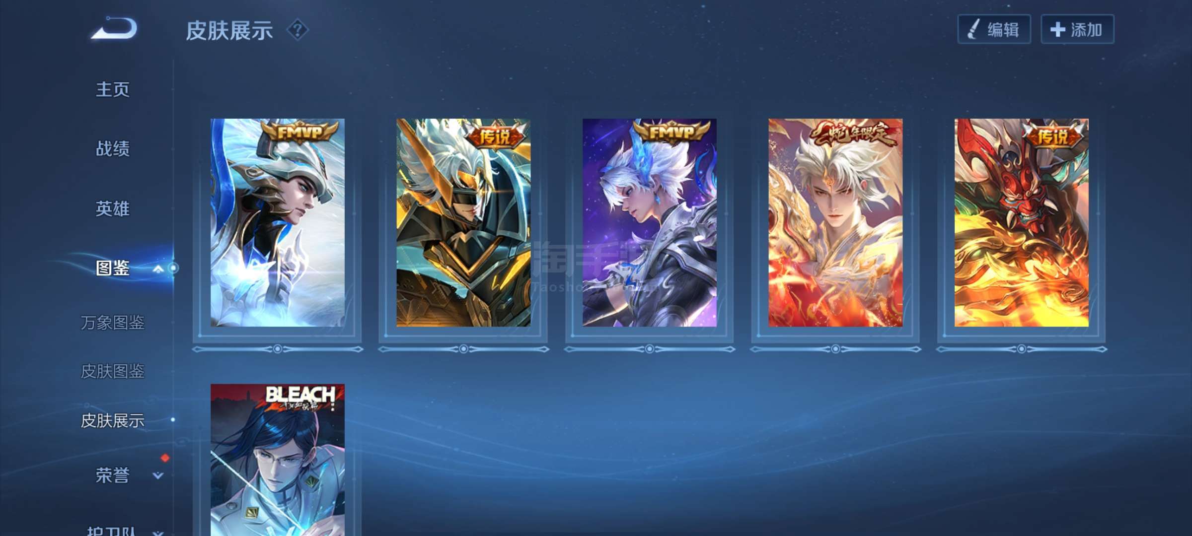 典藏1 传说9 史诗68 限定80 英雄127 皮肤23