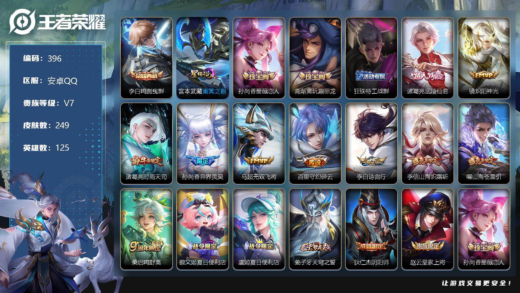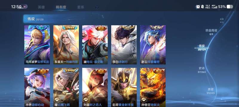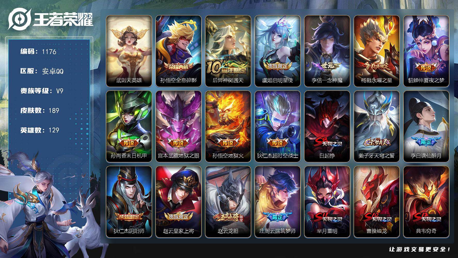 安卓Q-V9位-129英雄-189皮肤-1典藏皮肤-1典藏英雄-9传说-55史