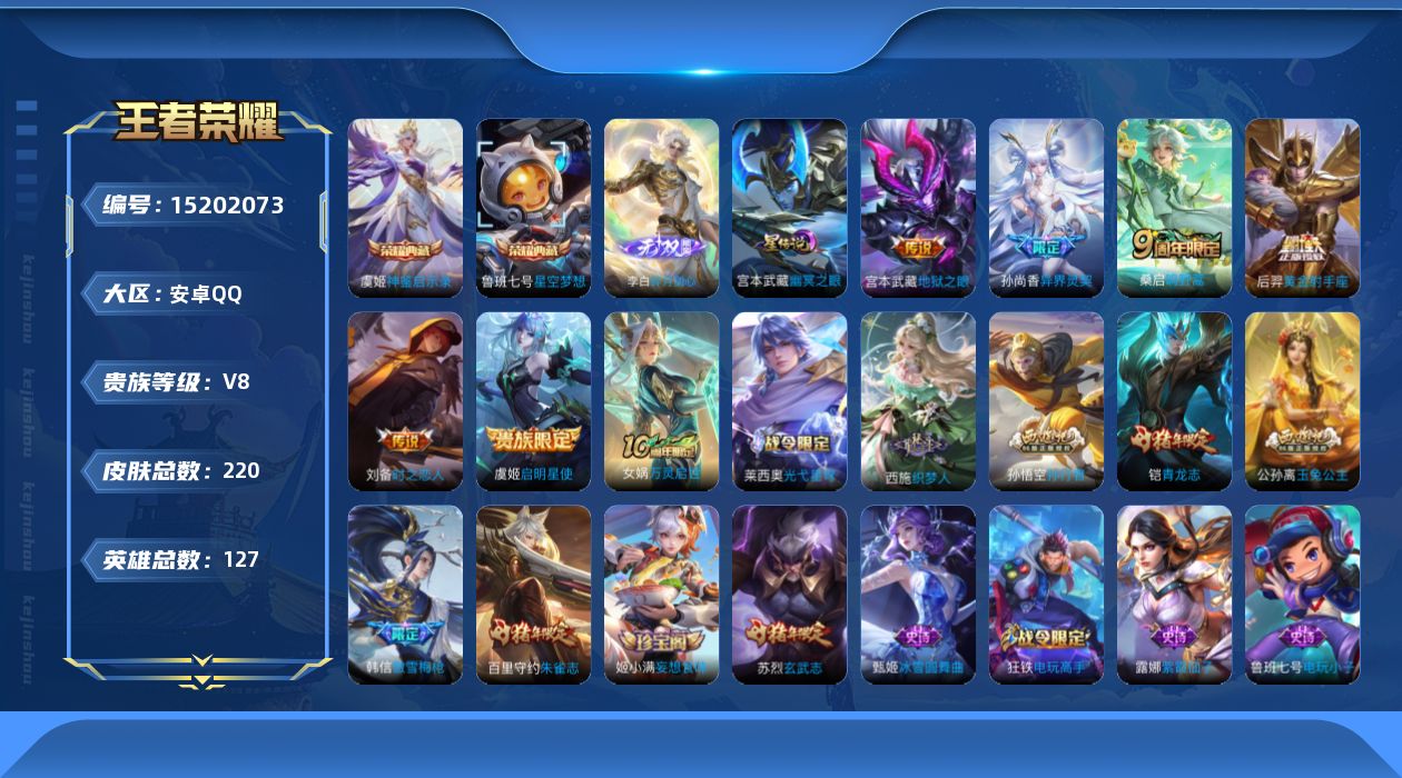 安卓Q-无双王者-127英雄-198皮肤-1典藏-8传说-59史诗