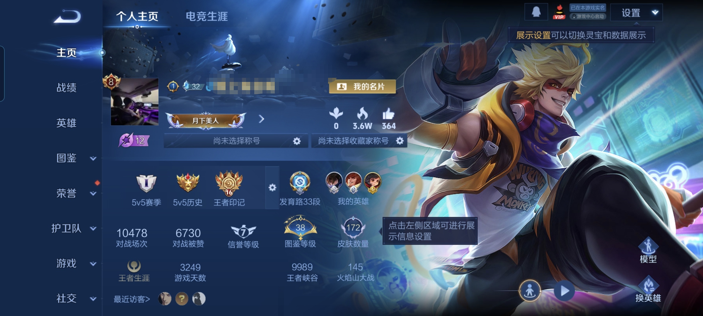 贵族7/皮肤186/典藏2/传说4/史诗45/英雄125/
