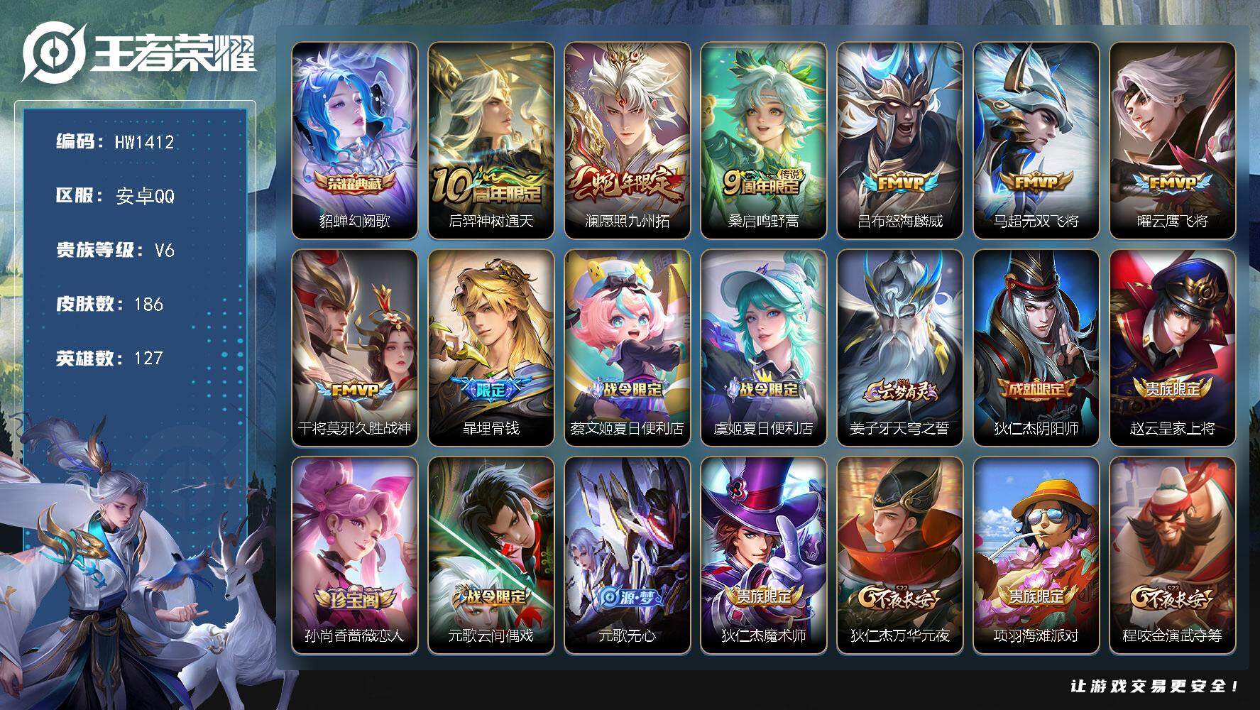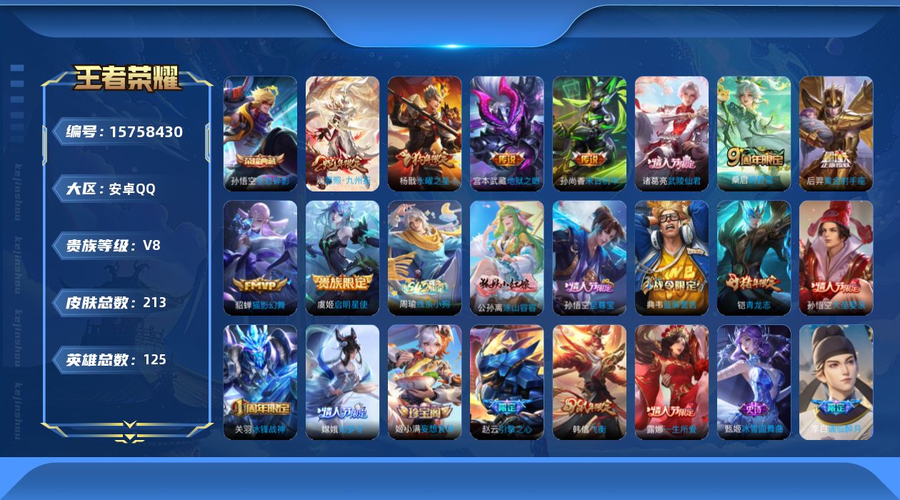 安卓QQ/最强王者/156皮肤/124英雄/1典藏/0珍品