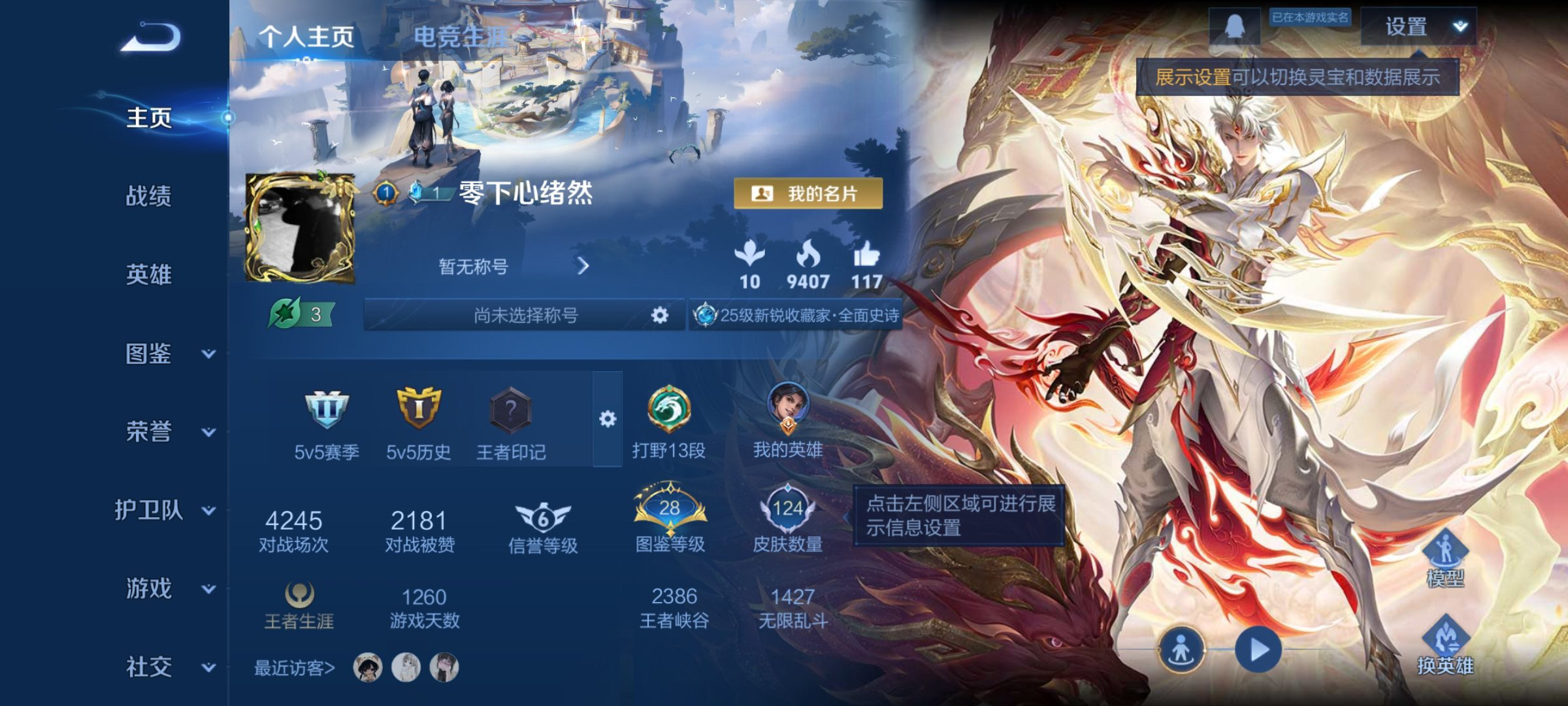 贵族等级: V4 英雄数: 118 皮肤数: 98 星传说: 幽冥火 传说皮: