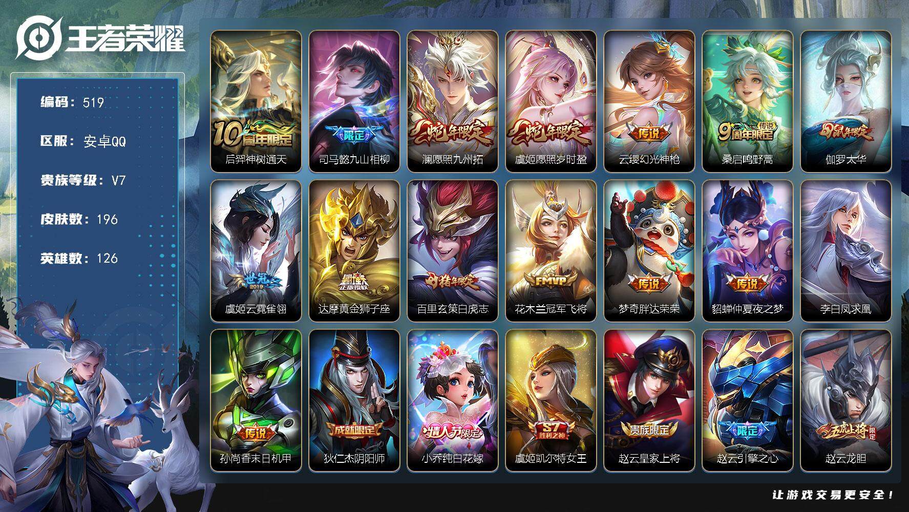 v7 1典藏 李逍遥 9传说-226皮肤-125英雄