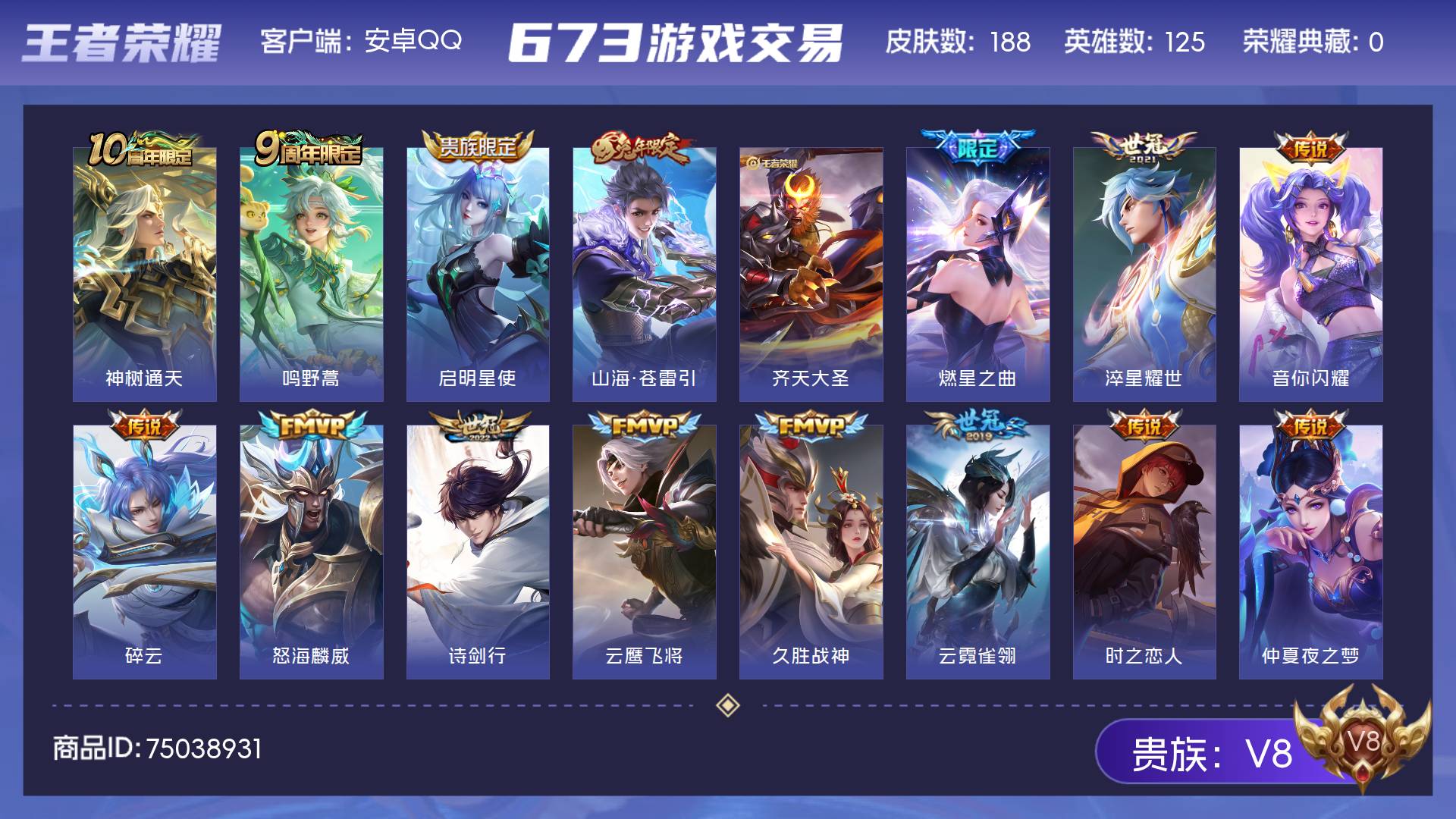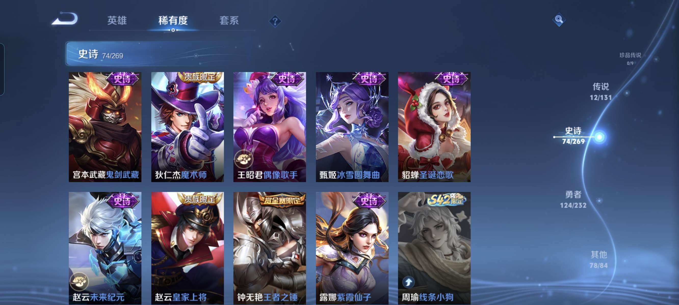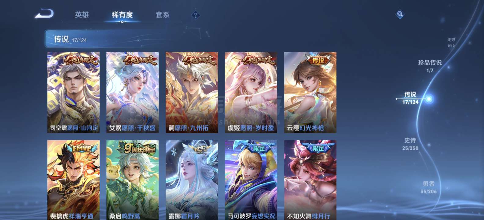 [王者荣耀]V71典藏13传说85史诗266皮肤至尊星耀V