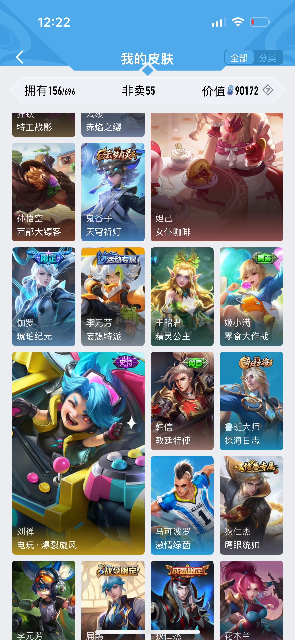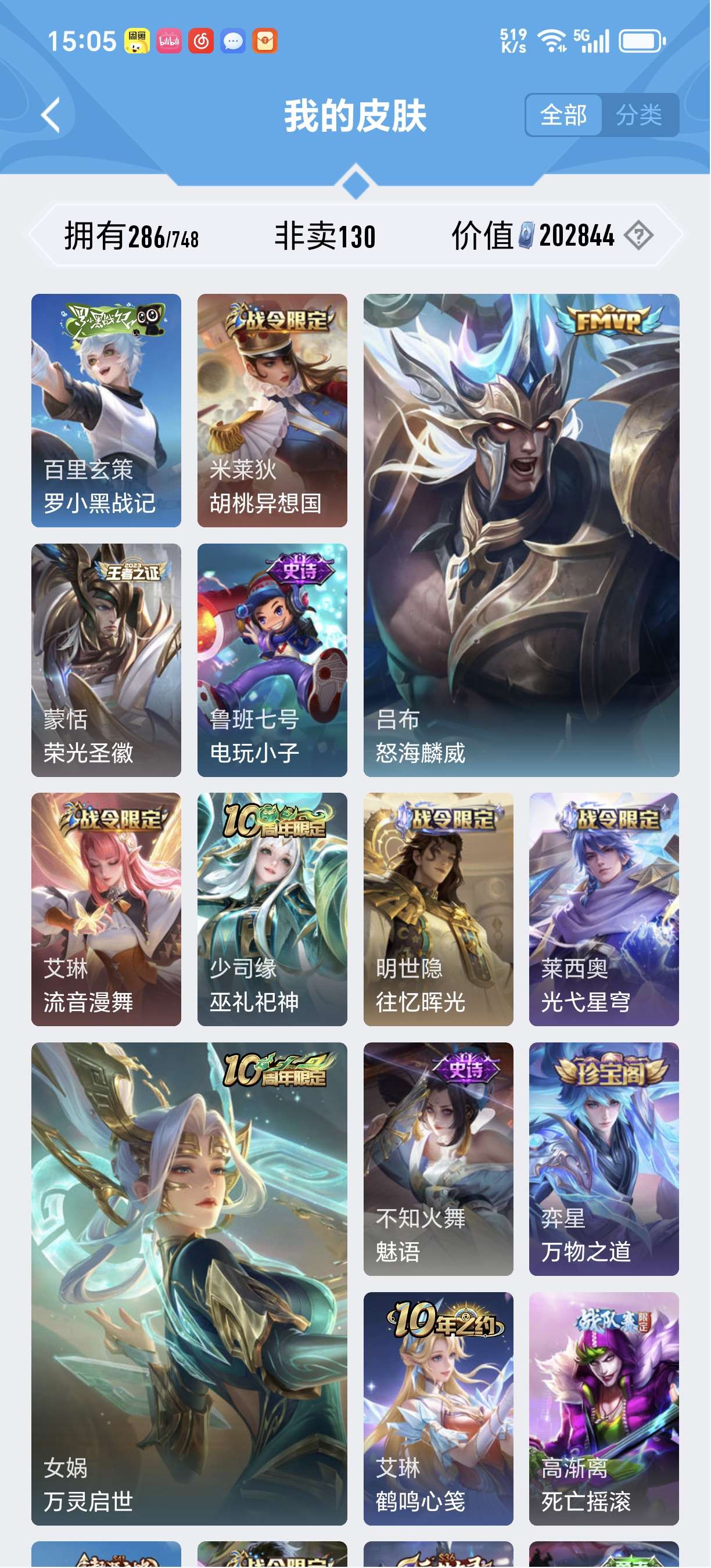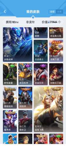 V6 皮肤145 英雄125 绝世王者 荣耀典藏1 珍品传说1 星传说2 传说9 其他皮肤141