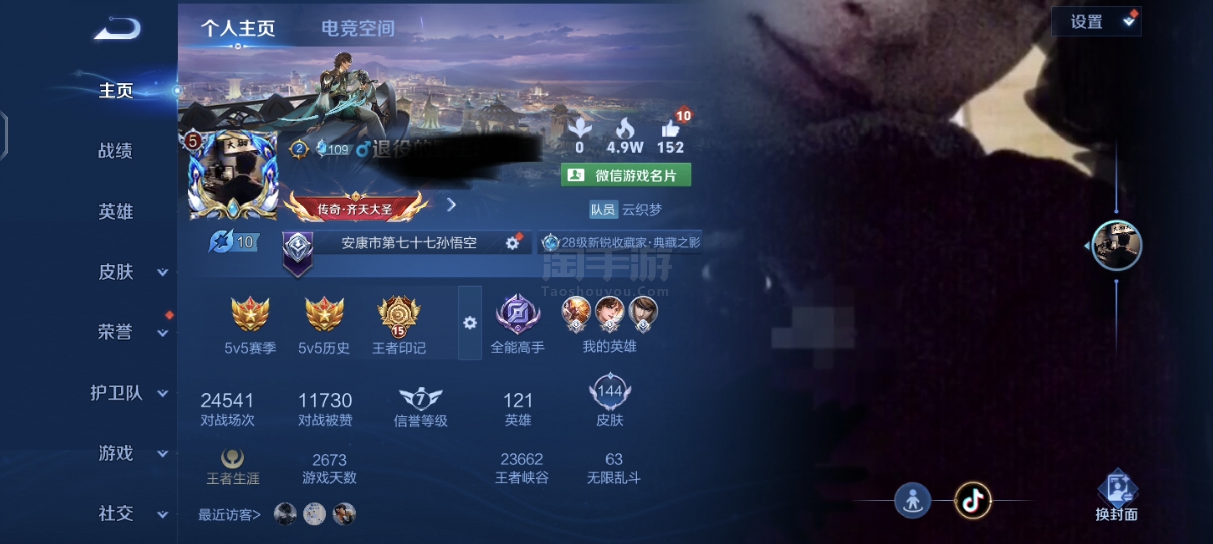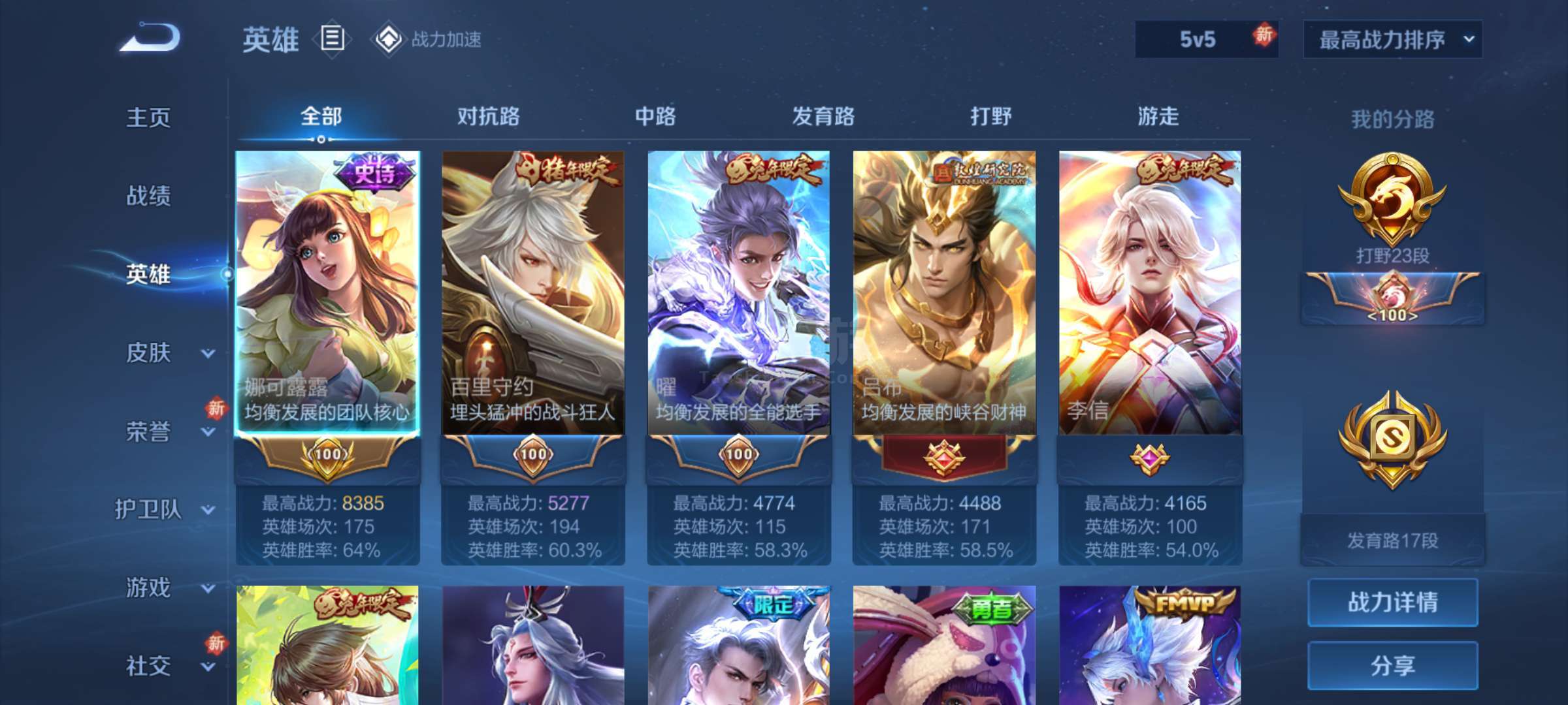 贵族等级: V7 英雄数: 128 皮肤数: 179 传说皮: 游龙清影,记忆