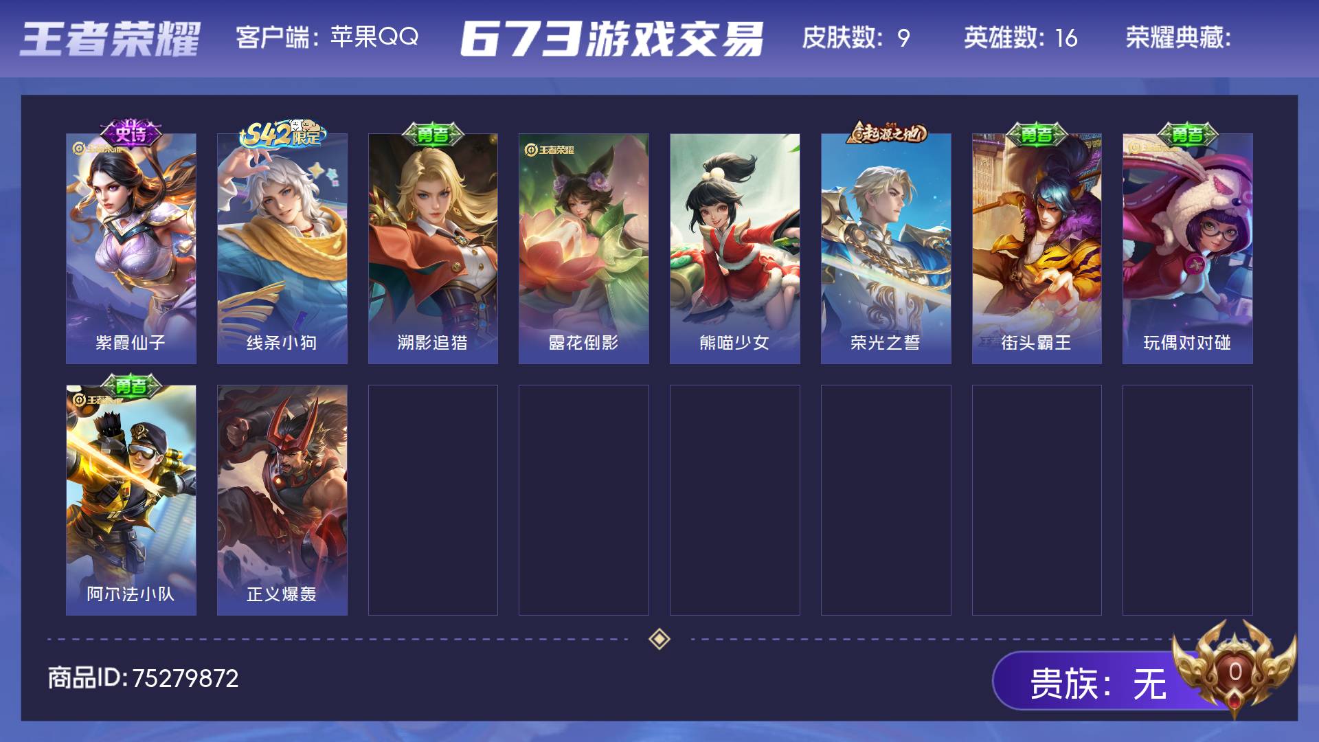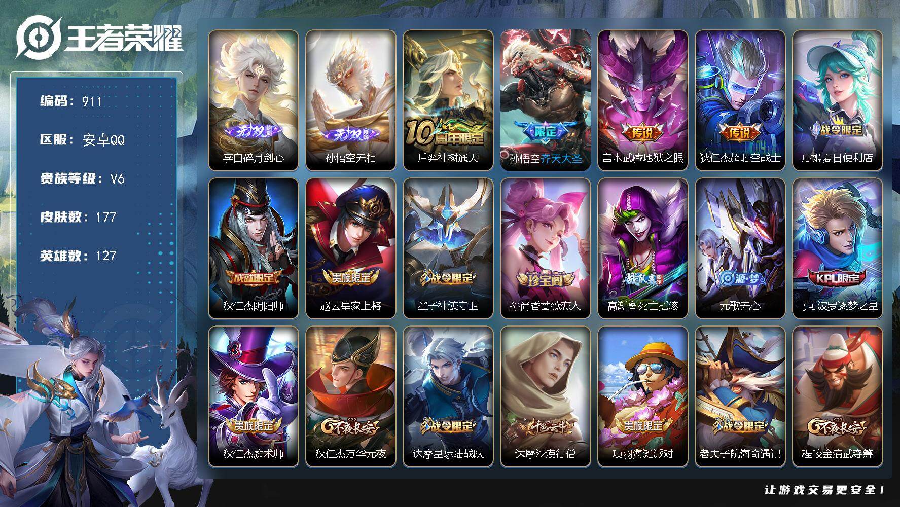 2035203 王者荣耀账号 安卓Q-V6-最强王者段位-127英雄-177皮
