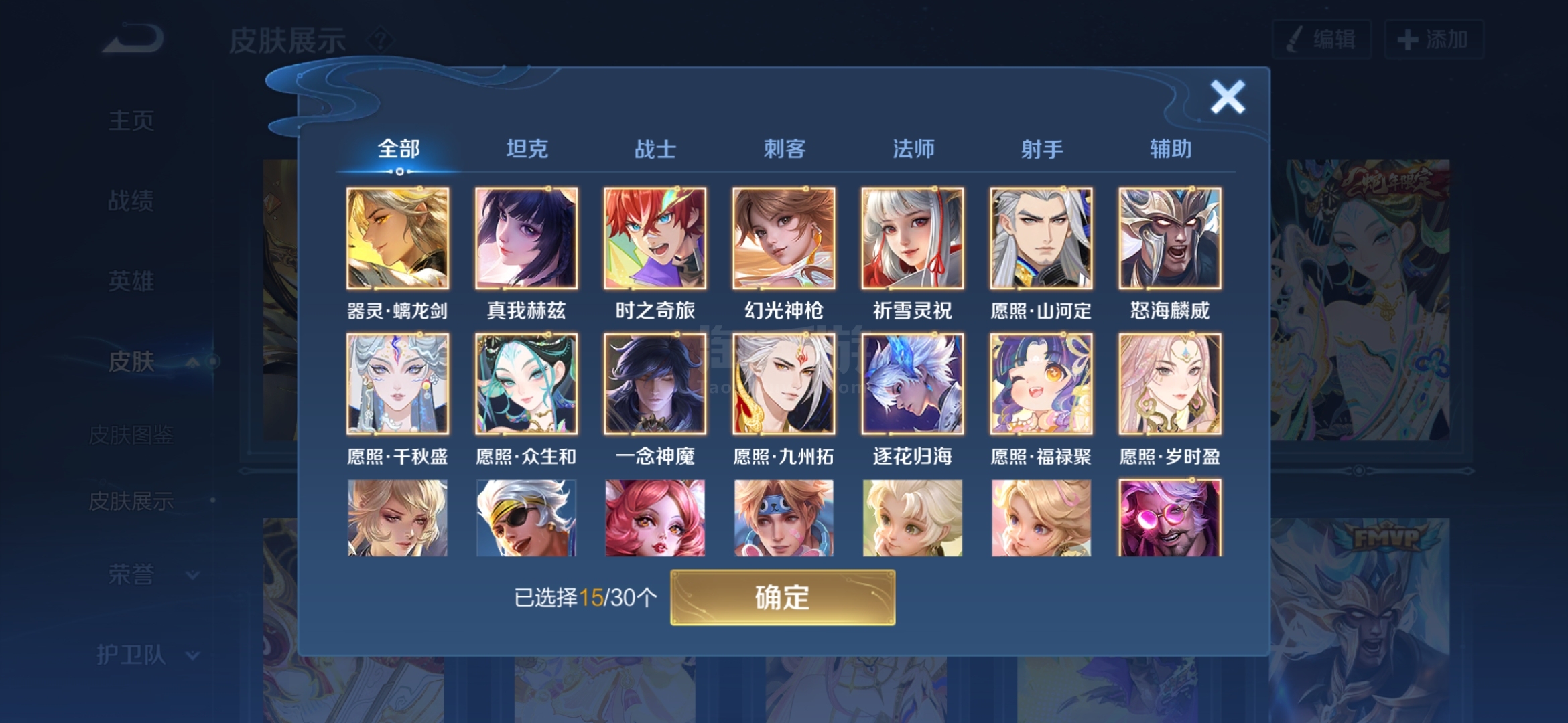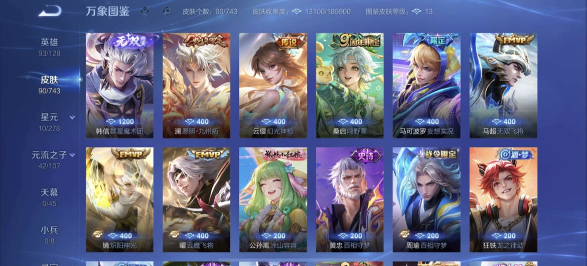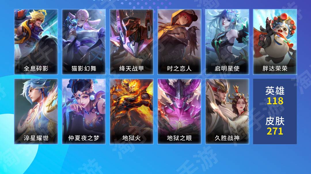 皮肤264 英雄126 无双王者 荣耀典藏1 传说11 其他皮肤105-急出11传说 70史诗