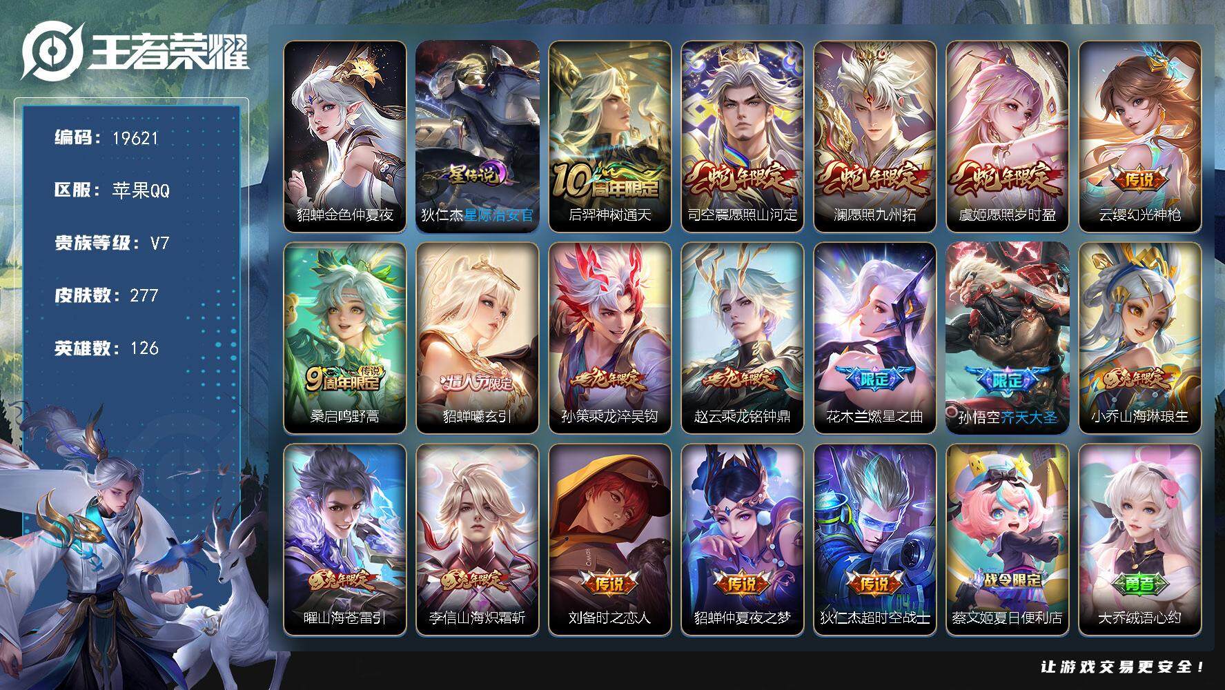 【301皮肤1水晶2星元11传1天幕 说可秒换绑】苹果QQ