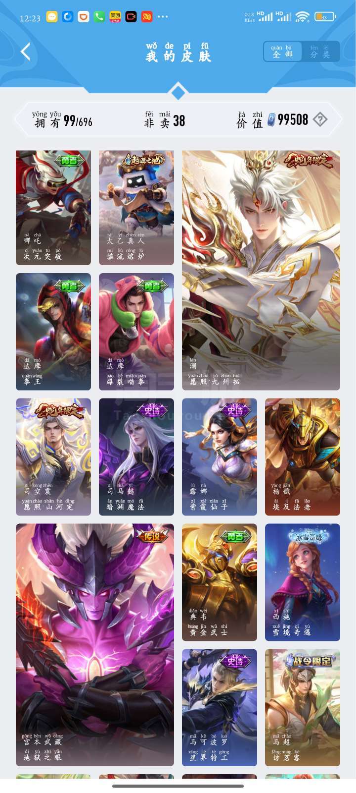 皮肤92 英雄115 荣耀王者 无双皮肤1 传说8 其他皮肤27-便宜卖,有急事有需要的速度
