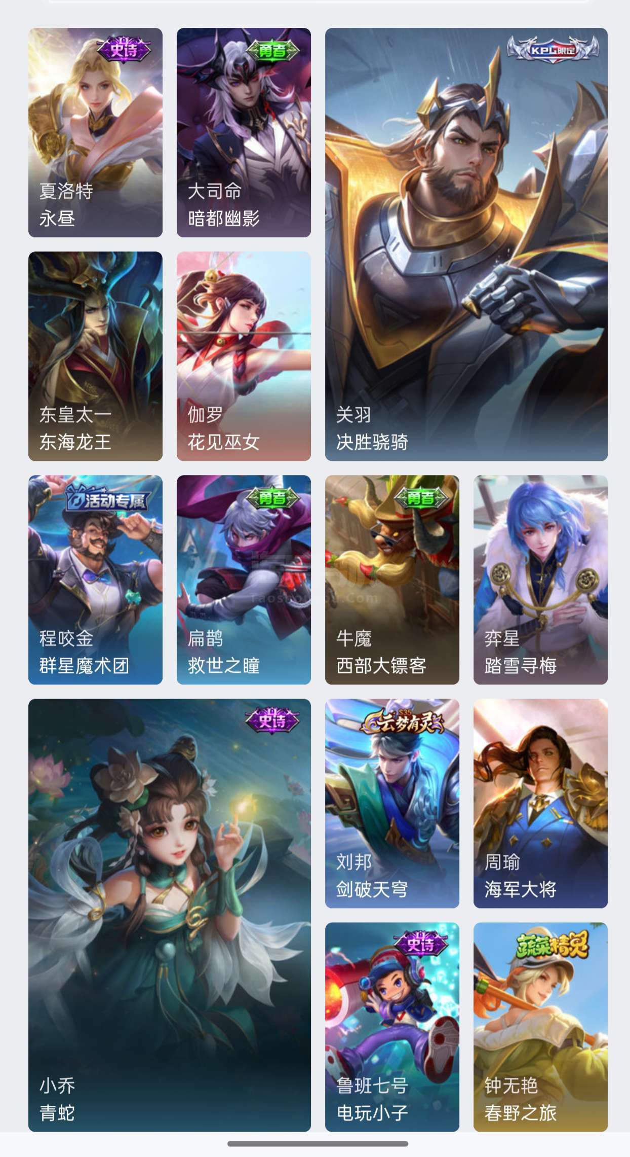 安卓Q-V8-永恒钻石V段位-127英雄-292皮肤-1典藏英雄-10传说-7