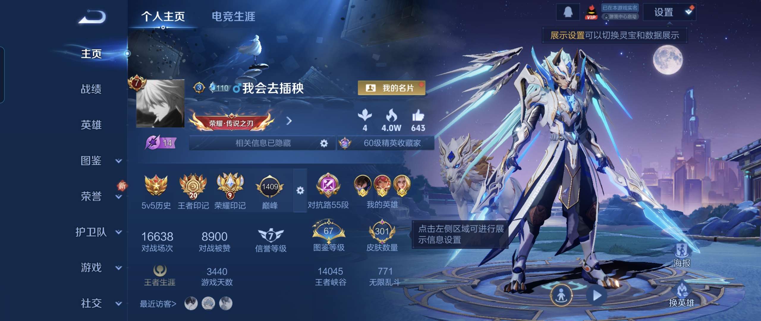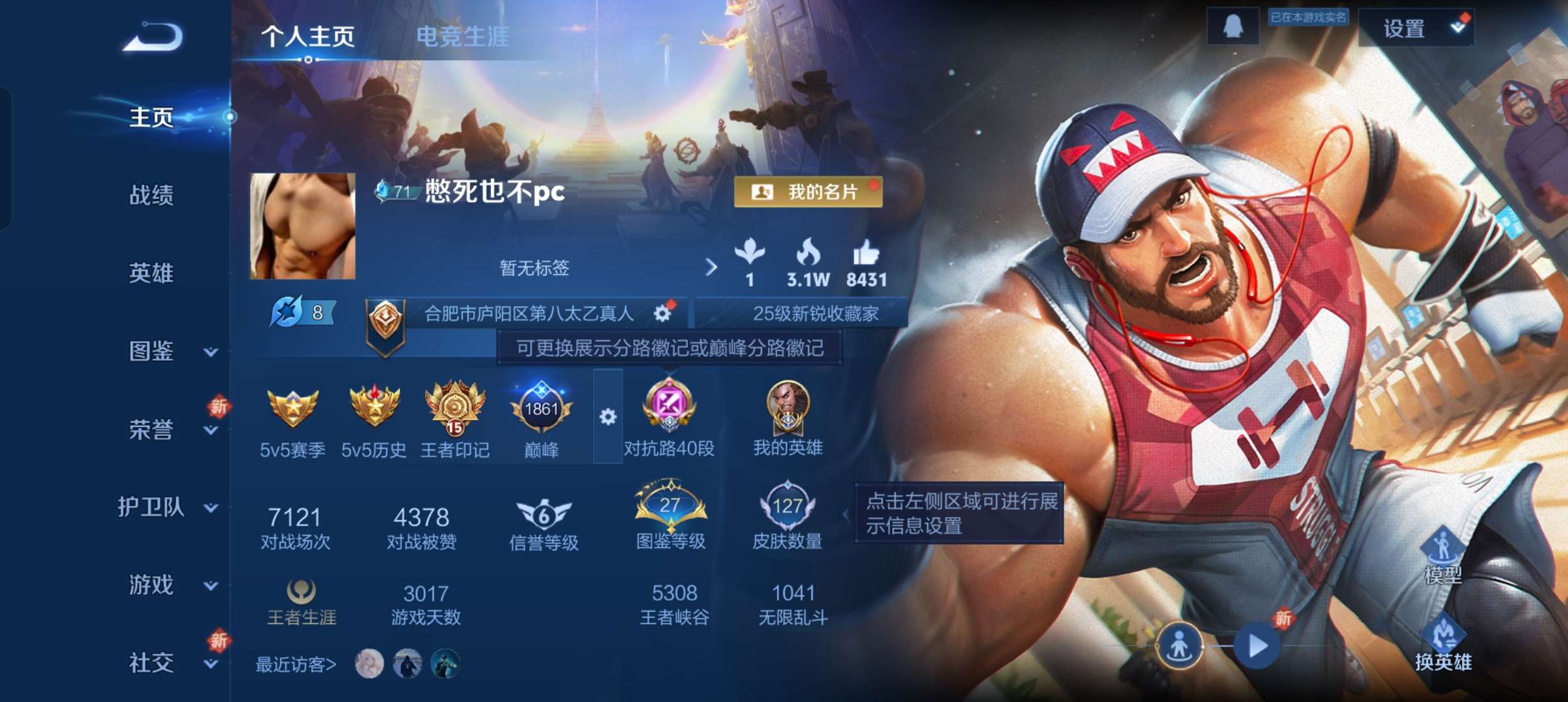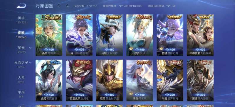 实名: 可修改 贵族等级: V7 英雄数: 128 皮肤数: 201 无双皮: