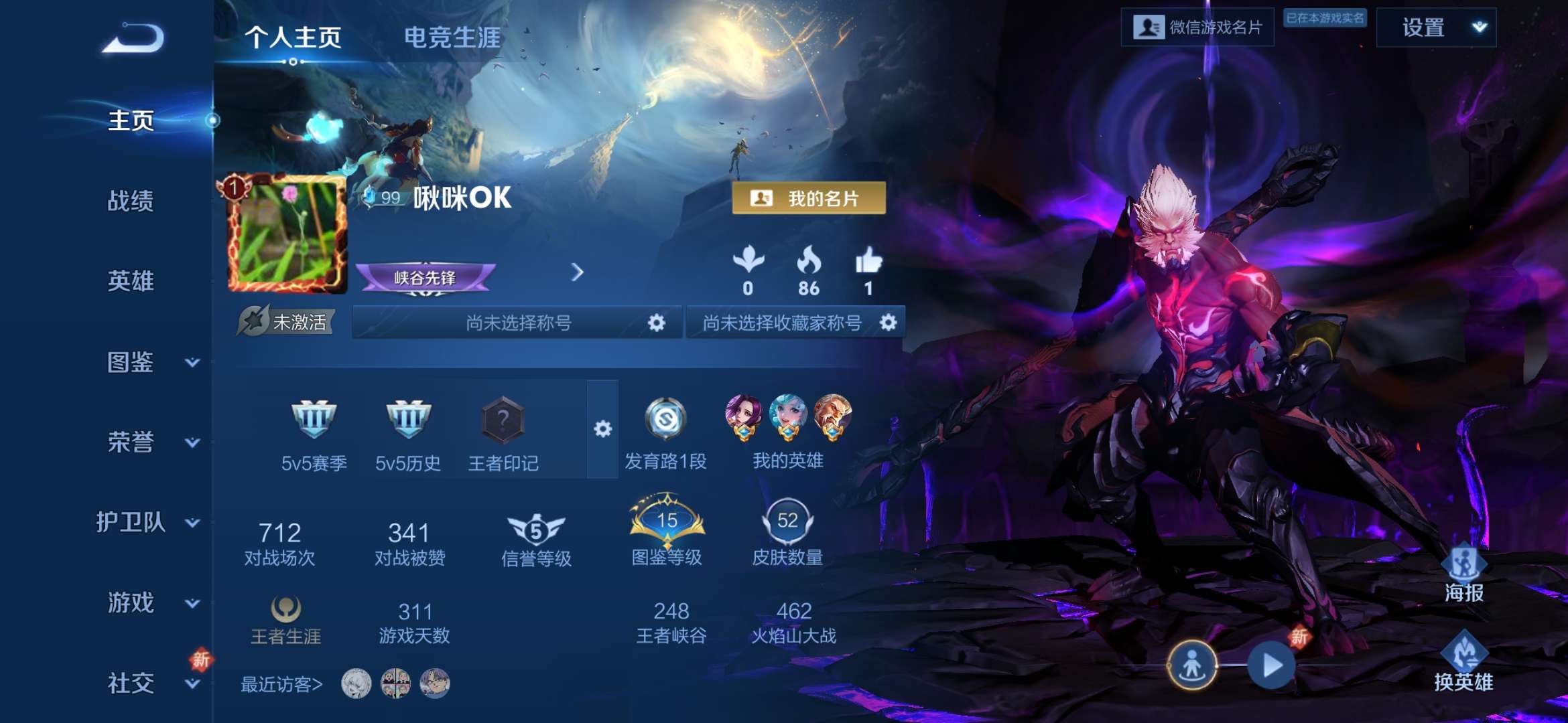 实名: 可修改 贵族等级: V7 英雄数: 127 皮肤数: 256 星传说: