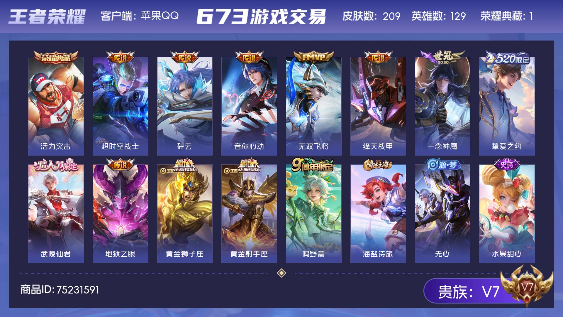 V7 皮肤209 英雄129 荣耀黄金 荣耀典藏1 传说13 其他皮肤201