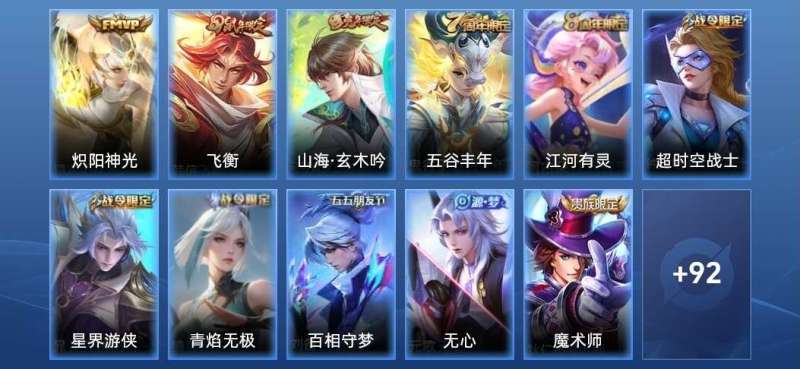 诸葛年限,吕布年限,镜fmvp,花木兰限定,还有街头霸王,1现在100多个皮肤碎片