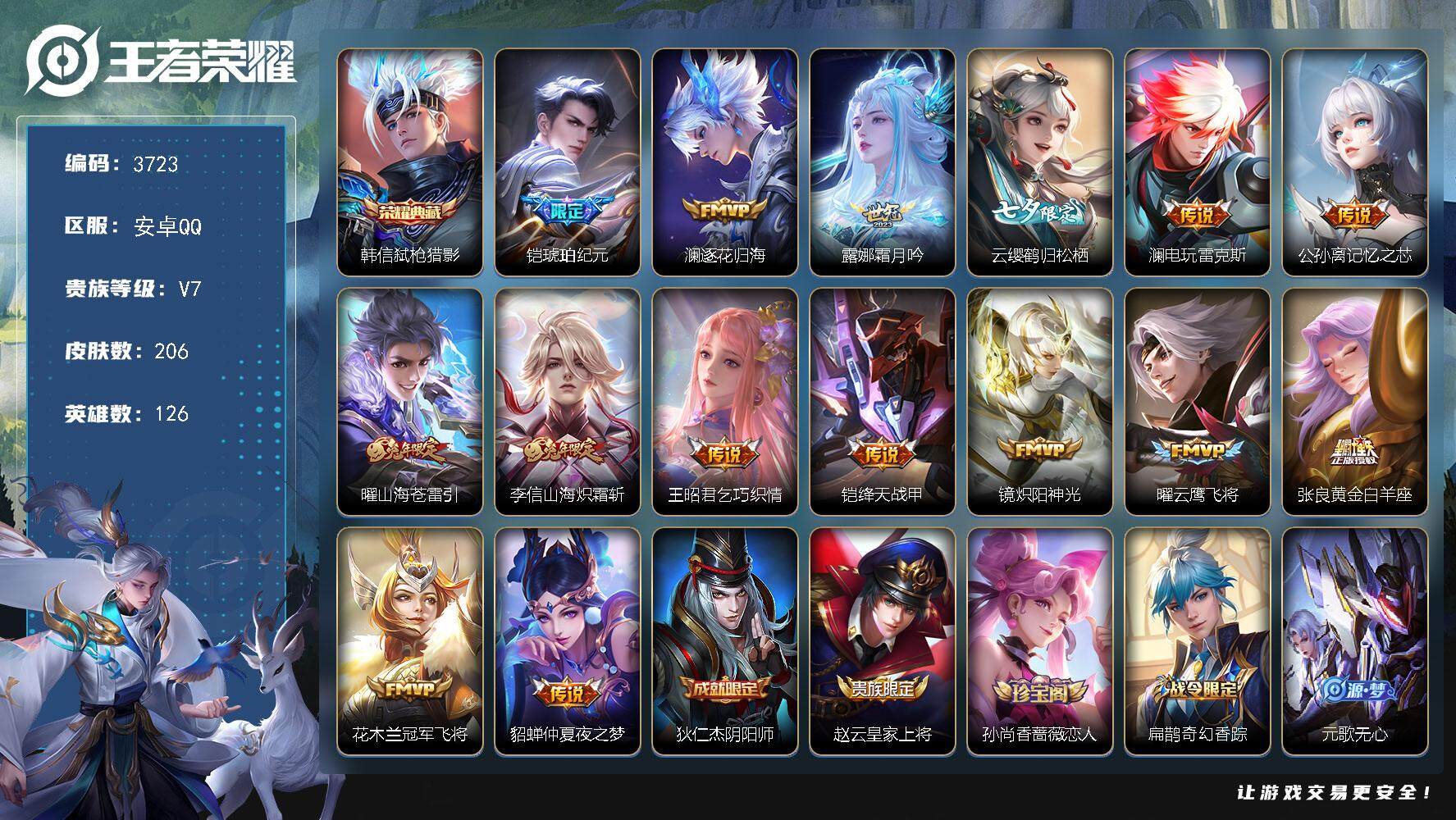 安卓Q-V7-永恒钻石II段位-128英雄-199皮肤-1典藏皮肤-5传说-5