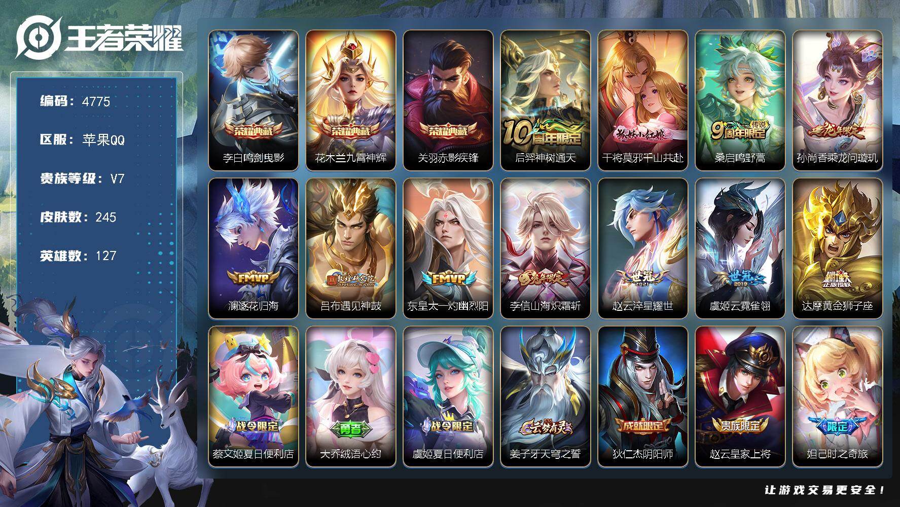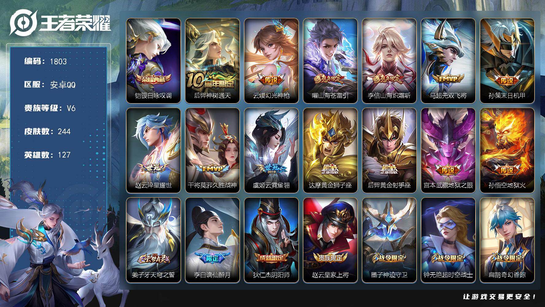 V7 皮肤244 英雄128 至尊星耀 荣耀典藏1 无双皮肤1 传说8 其他皮肤240