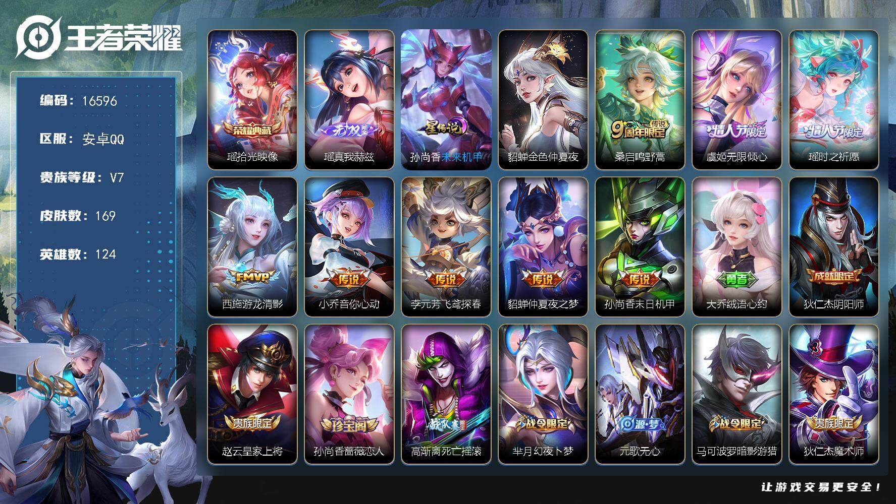 安卓QQ 皮肤256 英雄124 无双1 珍品传说1 传说7 其他皮肤91 最强王者-