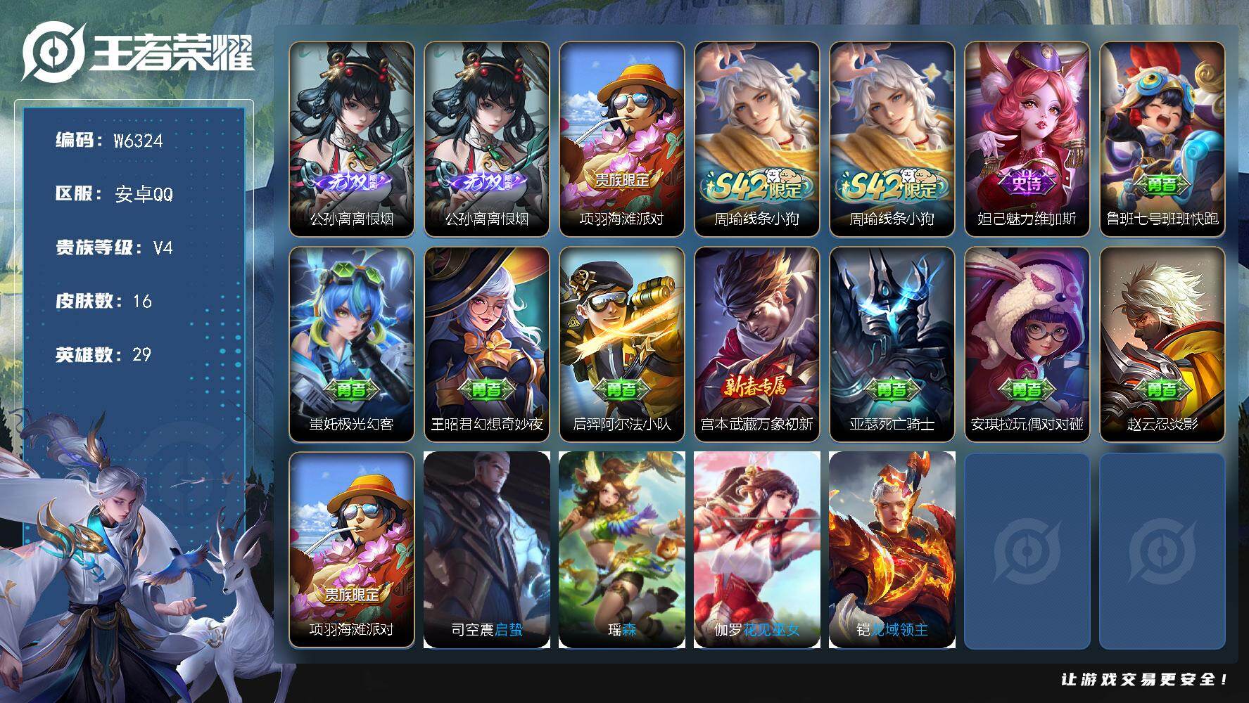 -无二次-贵4-29英雄-16皮肤-1无双-2史诗-2限定