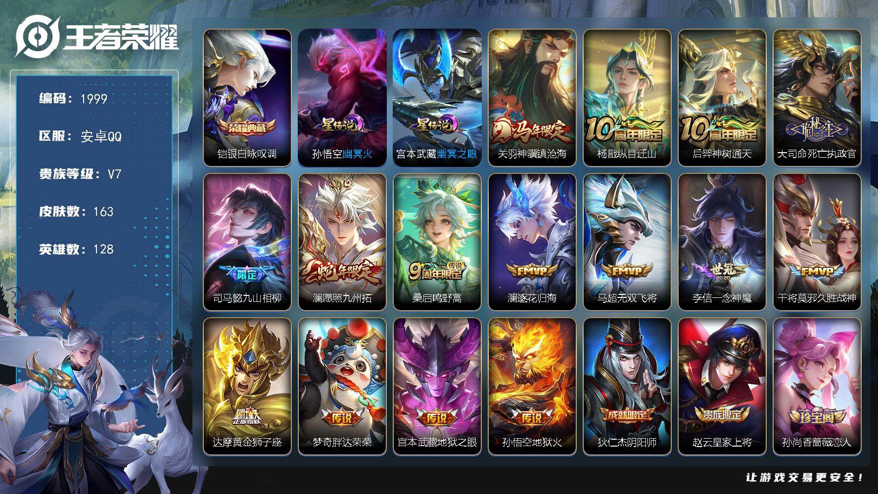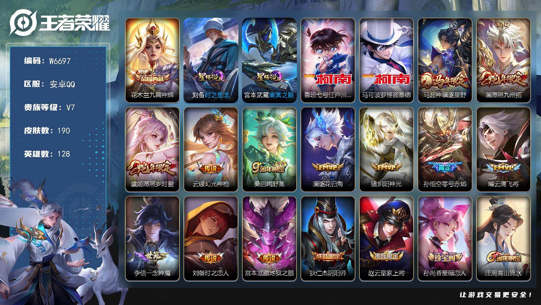安卓Q区-无二次-贵7-128英雄-190皮肤-1典藏-2珍品传说