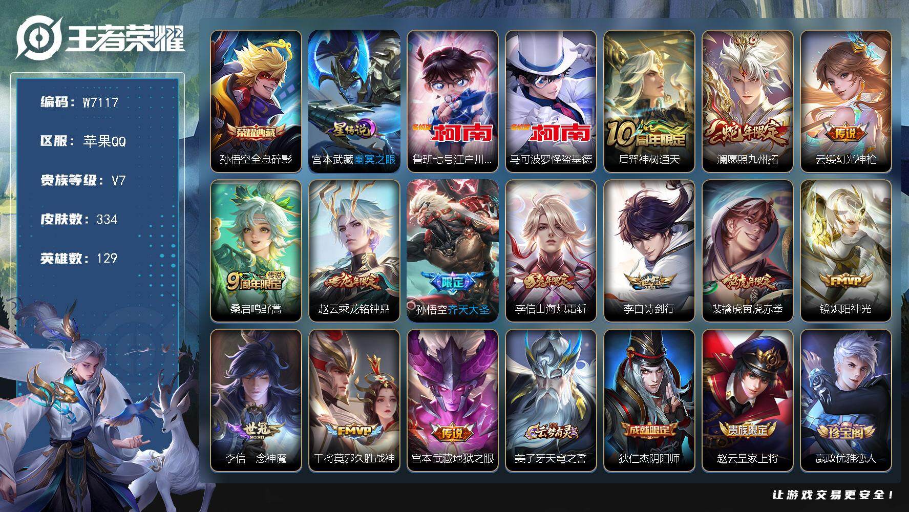 【W7117】苹果Q区-无二次-贵7-129英雄-334皮肤-1典藏-2珍品传