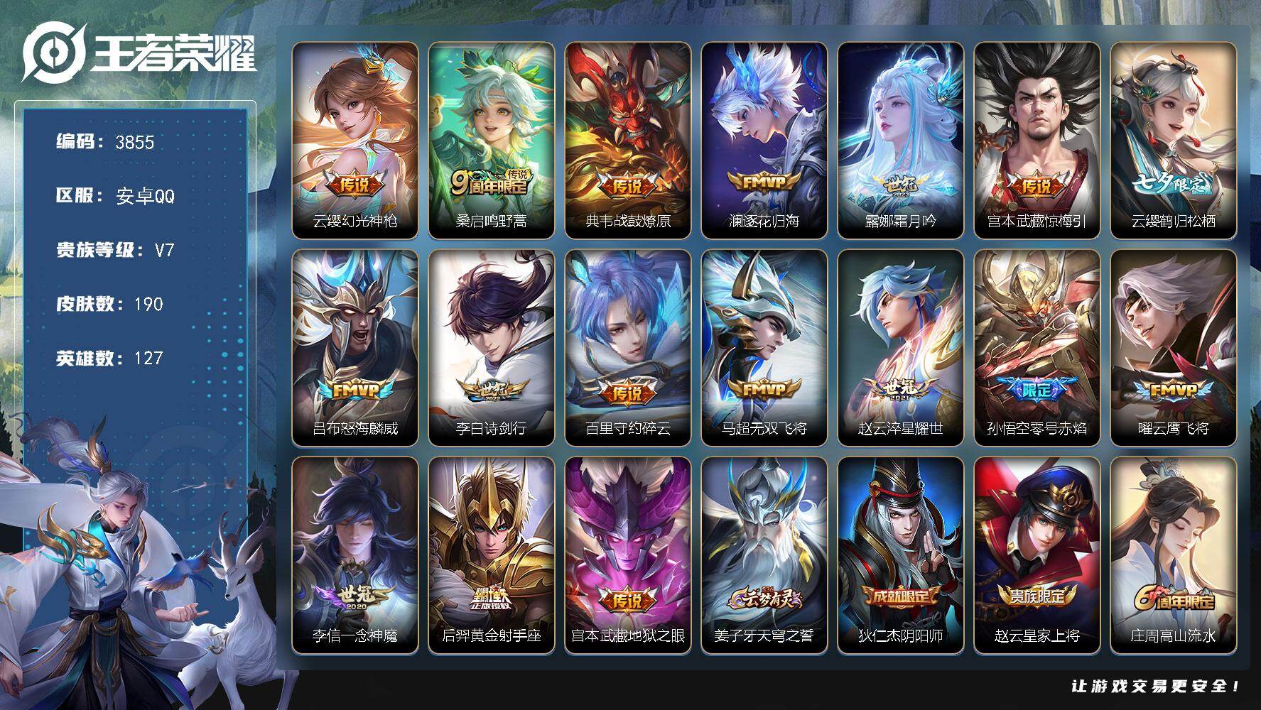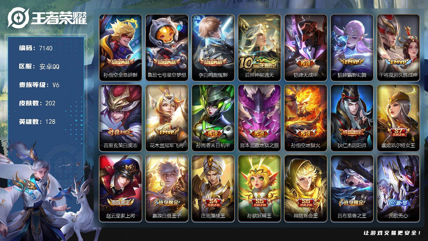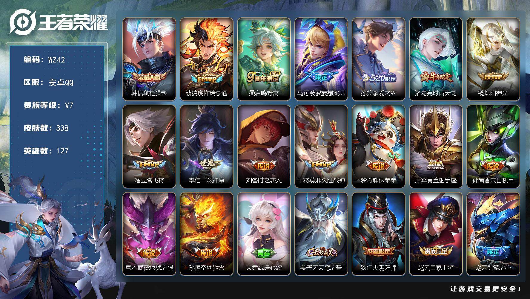 安卓QQ/至尊星耀/293皮肤/128英雄/0典藏/0珍品无双/0无双/0珍品传