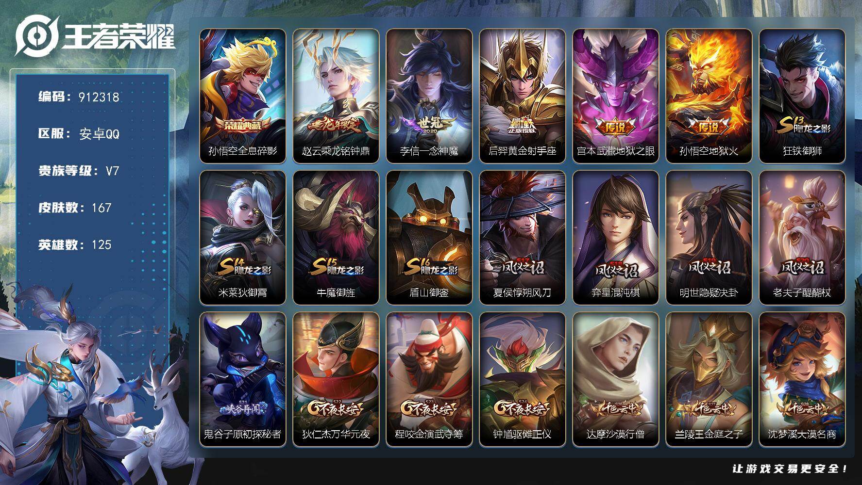 V7 1典藏 6传说 125英雄 167皮肤