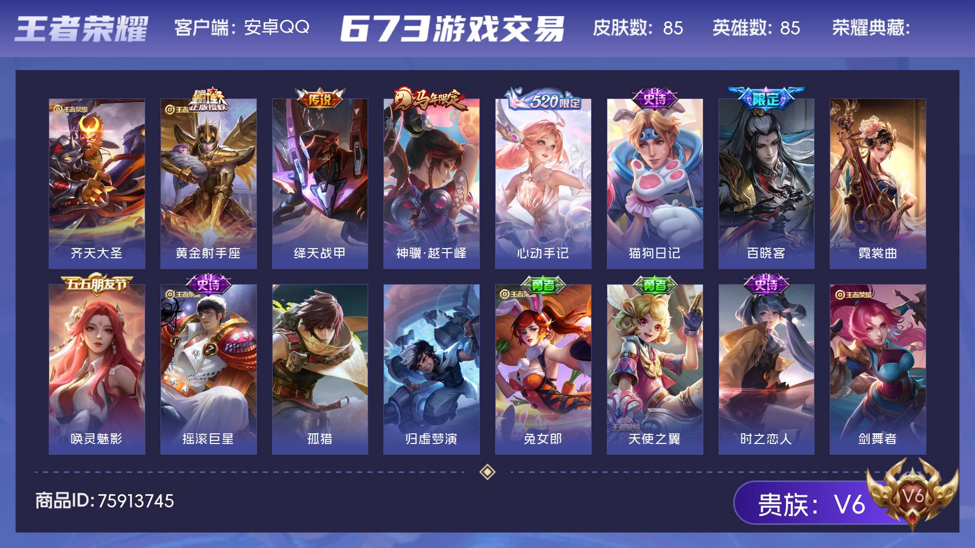 V6 皮肤85 英雄85 永恒钻石 传说5 其他皮肤84