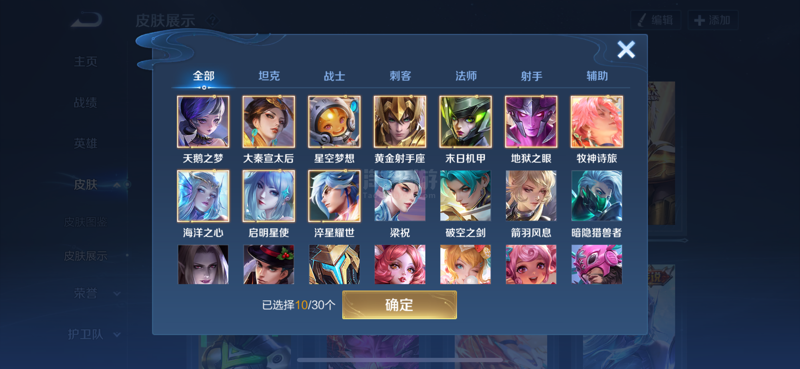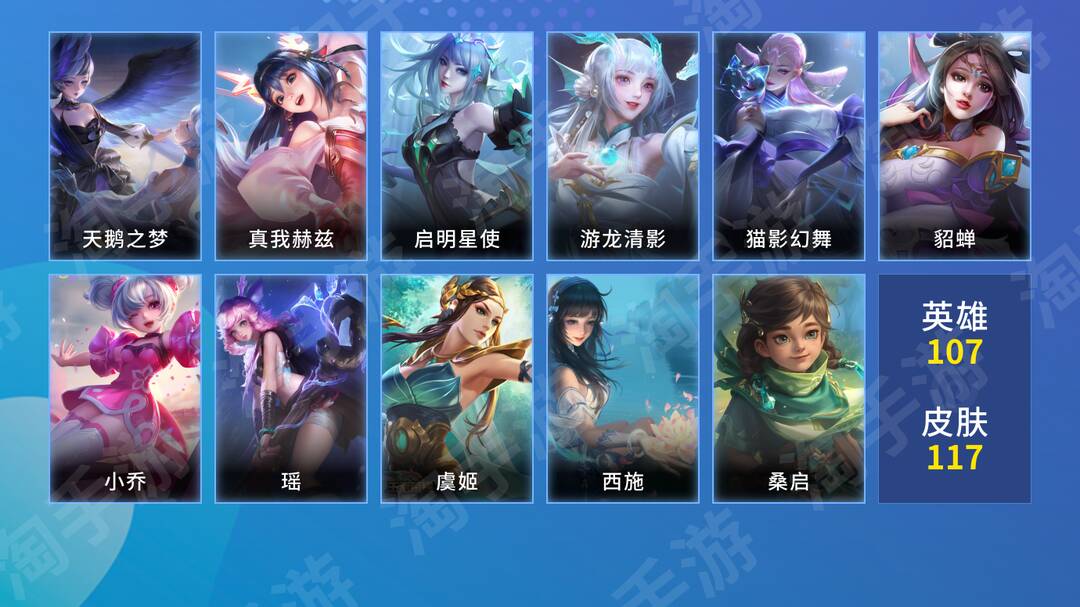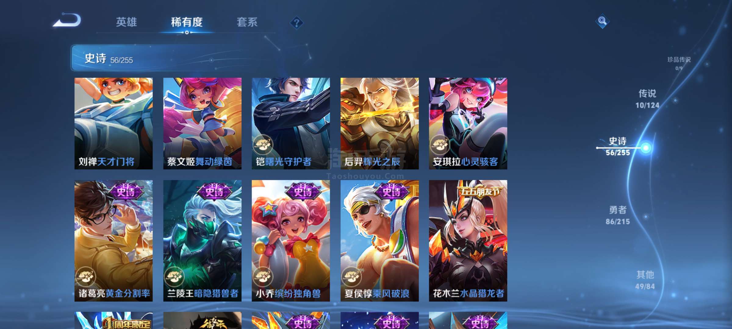 安卓QQ/至圣王者/226皮肤/126英雄/1典藏/0珍品无双/0无双/2珍品传说/6传说/65史诗