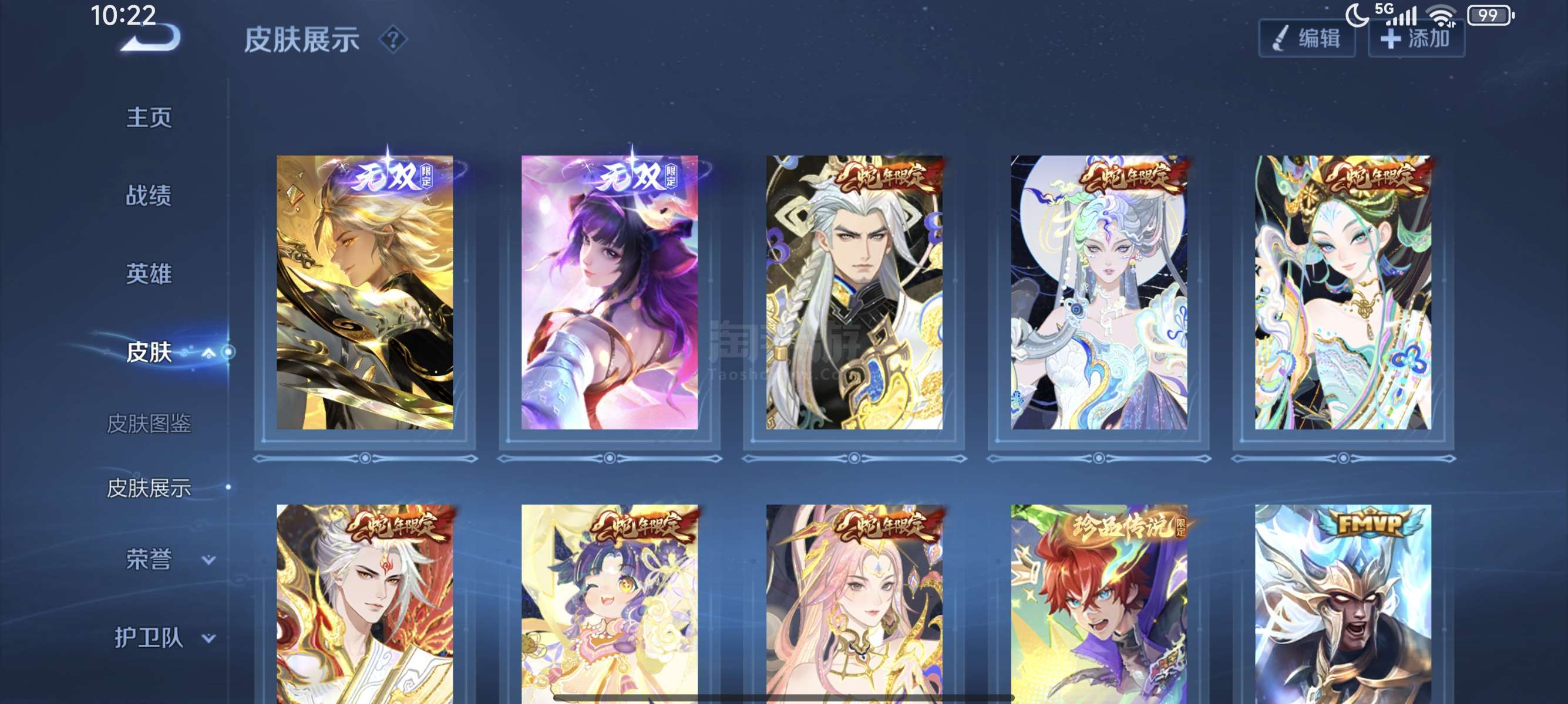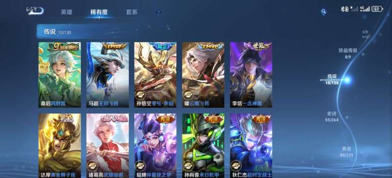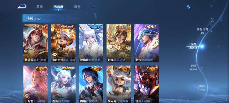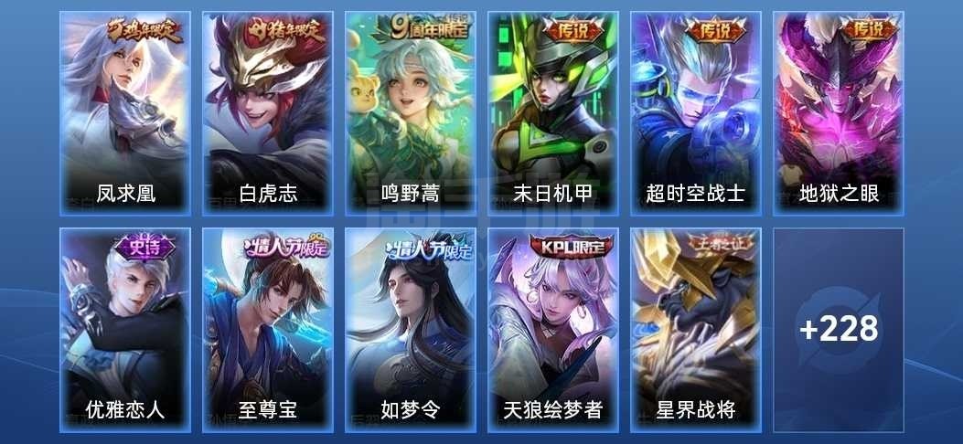 V8 皮肤270 英雄129 至尊星耀 荣耀典藏1 星传说2 传说20 其他皮肤255