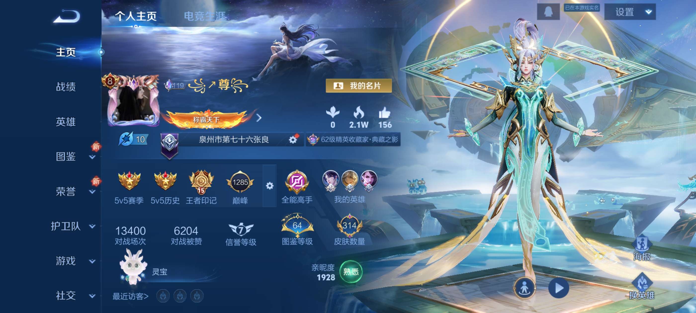 安卓QQ-1典藏-10传说-314皮肤-127英雄-荣耀王者-Q区荣耀王者帐号喜欢可入