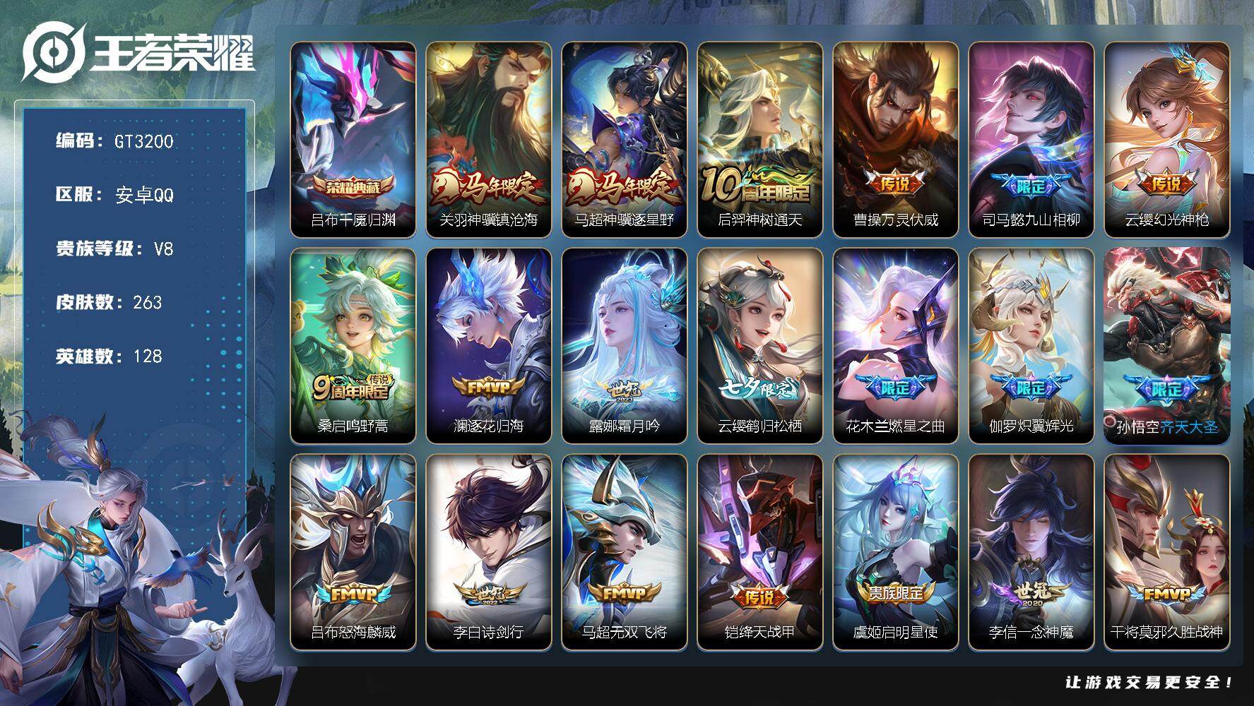 可换绑【高质量精品号·吕布典藏·关羽马超马限·九山相柳·鹤归松栖·炽翼辉光·齐