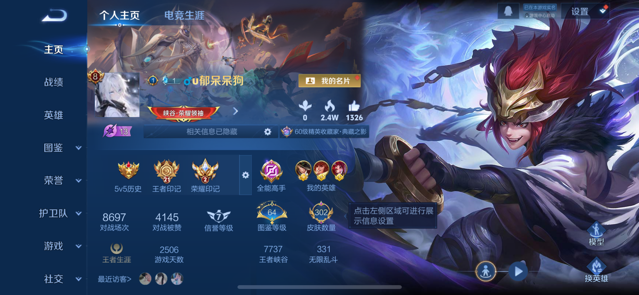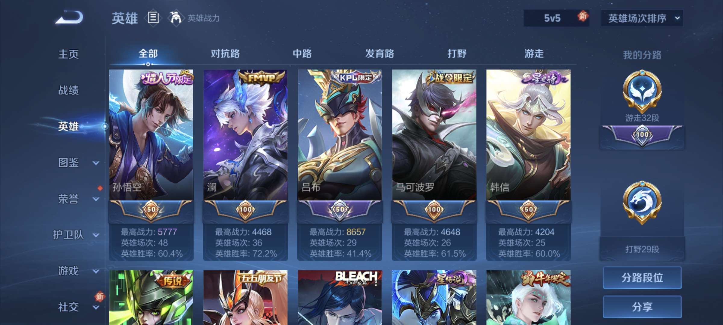双典藏其中一个未兑换,179皮肤,8传说,61史诗,126英雄,打野29段,对抗路22段,游走16段