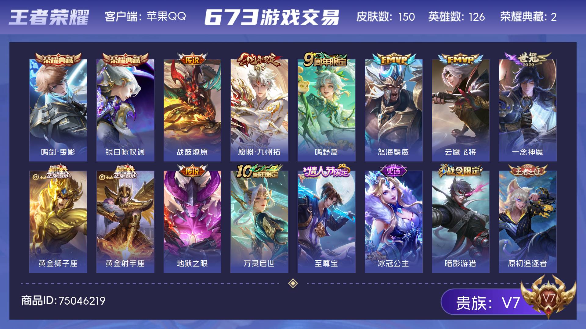 皮肤150 英雄126 绝世王者 荣耀典藏2 传说9 其他皮肤50-【金标猴子 金标李白2典藏9传说1星元V7】苹果Q-150