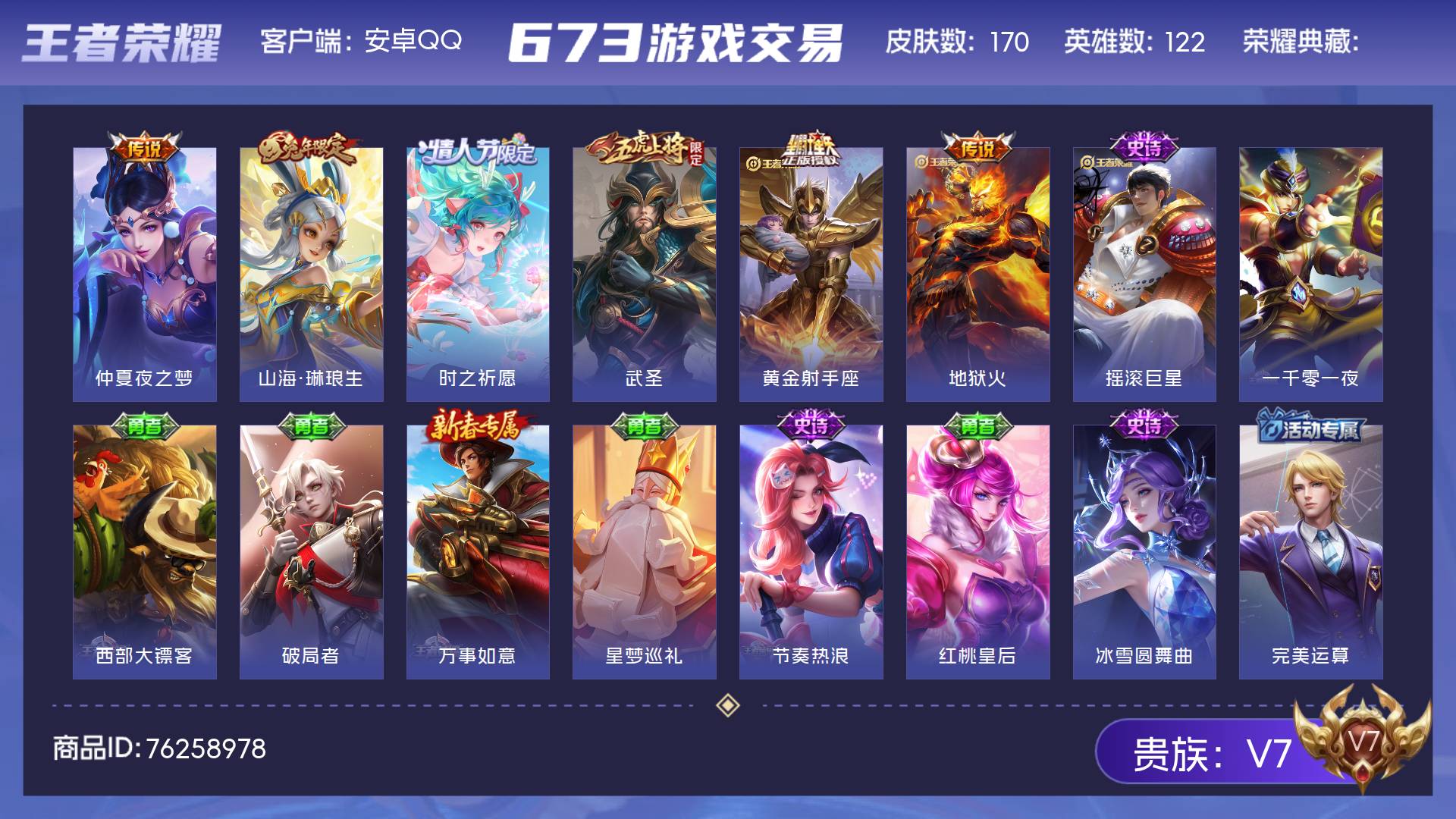 V7 皮肤138 英雄125 无双王者 无双皮肤2 珍品传说2 星传说1 传说7